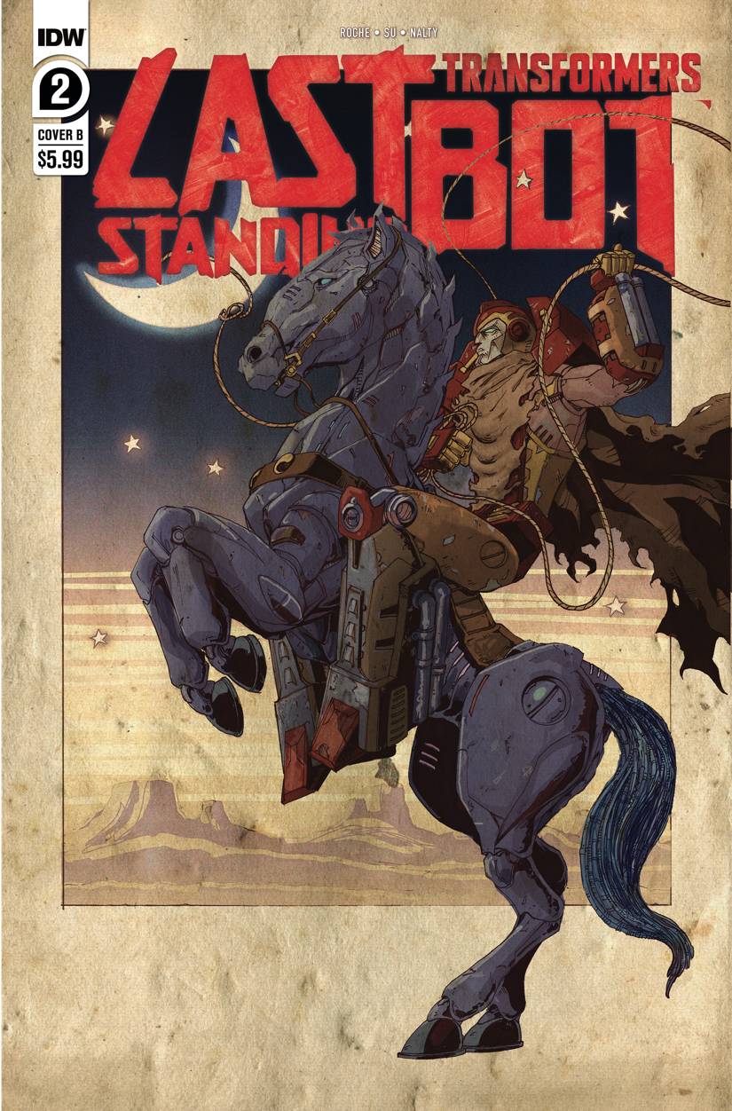 Transformers Last Bot Standing #2! After ages of isolation, the Last Bot meets with the Visitors, the last straggling survivors of a dying race and the greatest threat Donnokt's ever seen. But how will the locals react to not only mysterious Visitors from the stars but also a robot in disguise in their midst? Cover A by Nick Roche, Cover B by Andrew Lee Griffith, Cover C by SidVenBlu, Cover D by Jim Stafford!