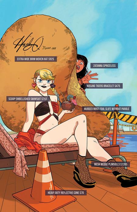 Harley Quinn 2024 Annual #1 (one-shot)! oot toot! Ladies and germs, don't you just hate it when you bust your butt left and right with no reward? Whether you're devoted to a life of heroism, villainy, or regular-person-ism--everyone needs a break. Which is where the HARLEY QUINN 2024 ANNUAL comes in! 40 pages of luxurious luxury cruise-based comedy guaranteed to leave you feeling rested, relaxed, and READY TO FRICKING SOLVE A MARITIME MURDER MYSTERY. When Zatanna gets framed for a mystery on a cruise ship, ol' Shamluck Harley is on the case!