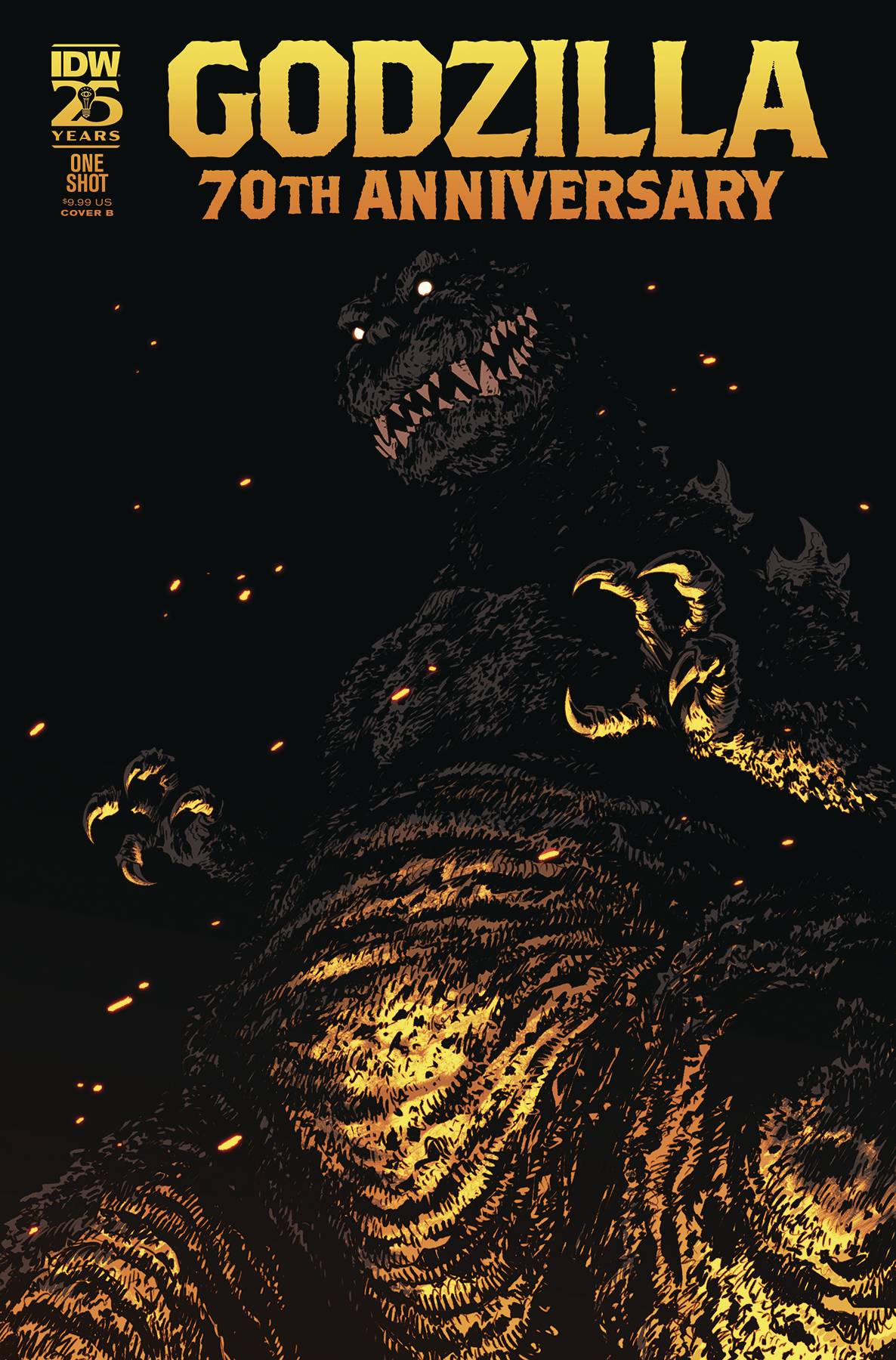 Godzilla 70th Anniversary #1 (one-shot)! Celebrating 70 years of Godzilla! Since 1954, Godzilla has been King of the Monsters, and what better way to celebrate than with a gigantic anthology of tales that get to the heart of Godzilla's lasting popularity! From the American Old West to modern Tokyo and beyond, this collection features stories of the King of the Monsters fighting with its allies like Mothra, against old enemies like the terrible Mechagodzilla, and reshaping the lives of all who fall in its path!Nine titanic stories by first-time and beloved Godzilla creators alike, including Joëlle Jones (Catwoman), Michael Conrad (Wonder Woman), Matt Frank (Godzilla: Rulers of Earth), James Stokoe (Godzilla: The Half-Century War), Adam Gorham (Ms. Marvel: The New Mutant), Dan DiDio (Metal Men), and many more!