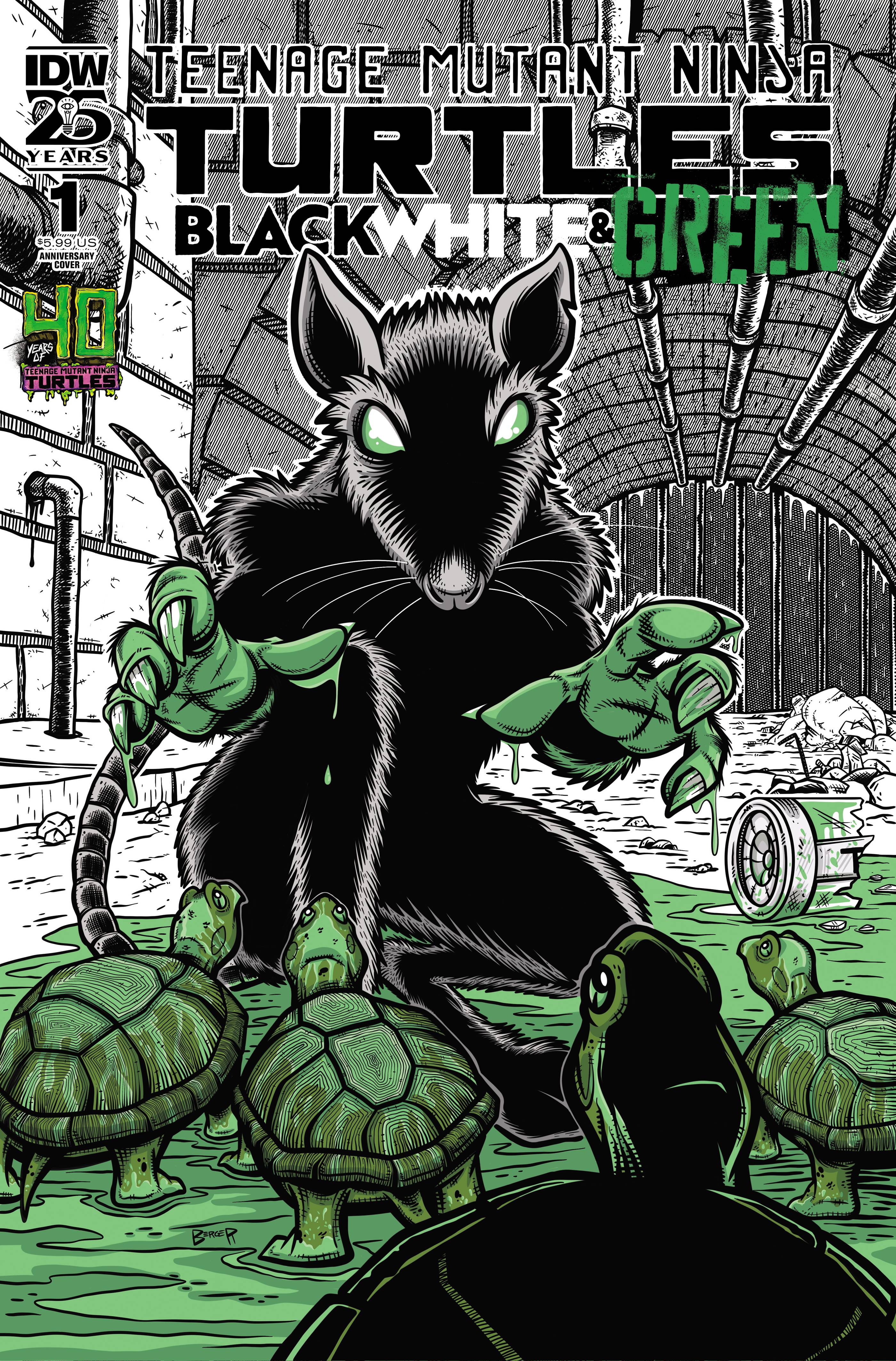 TMNT Black White & Green #1! It's the Teenage Mutant Ninja Turtles like you've never seen them before! This special series gathers up some of comics' most eclectic and exciting talent to bring their takes on TMNT to the page, taking the characters back to their origins in black-and-white independent comics...but with a touch of green! Thrill to all-new adventures by the likes of Paulina Ganucheau (Wonder Woman: The Adventures of Young Diana), Declan Shalvey (Deadpool vs. Old Man Logan, Moon Knight), Gigi Dutreix (Sonic the Hedgehog), Lorenzo Hall, Dave Baker (Mary Tyler Moorhawk), Jesse Lonergen (Man's Best), and more.