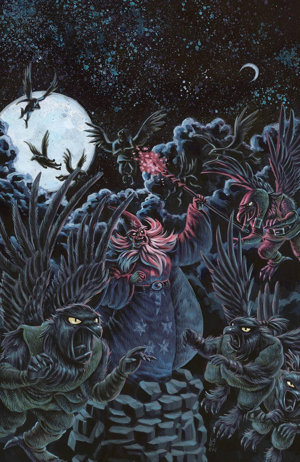 Orcs: The Wizard #1 (of 4)! The fun and fantastical ORCS! series from creator Christine Larsen (Adventure Time) returns with a new installment featuring our favorite underdog heroes: Bog, Pez, Zep, Utzu, and Gurh! After returning from their travels and celebrating with a dance party, a prank gone wrong inadvertently unleashes something ancient and evil. Even worse, in a tower in the middle of a dark forest, a wizard with grand, sinister plans needs a real army, and his sight turns toward the Orcish tribe...Cover A by Christine Larsen, Cover B by Eric Powell! $5.99