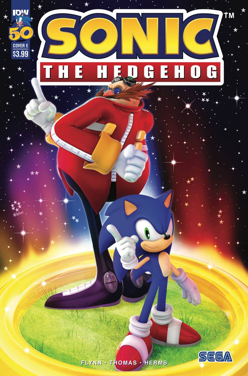 Sonic the Hedgehog #50! Sonic the Hedgehog #50 is here! To celebrate, this issue features two Sonics! And two Tails! Wait... One of them is green... And the other has tails made out of water?! Imposters! And they're working with Dr. Starline?! After assembling a squad of bad guys, kidnapping Belle, starting a forest fire, and causing chaos in Central City, Starline is finally ready to unleash his monstrous imposters: Surge and Kit! Will his meticulous planning be enough to defeat Sonic and Dr. Eggman? The throne is only big enough for one! Cover A by Sonic Team, Cover B by Evan Stanley, Cover C by Jonathan Gray, Cover D by Adam Bryce Thomas, Cover E by Nibroc, Cover F by Thomas Rothlisberger! $7.99