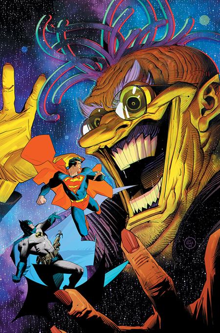 Batman Superman Worlds Finest #28! Something is destroying the fifth dimension--and if an army of evil imps can obliterate all the joy and life from an entire reality, what chance do Superman and Batman stand against it? A multitude of DC guest stars--and their fifth-dimensional counterparts--join the World's Finest duo in a last-ditch attempt to save Earth from the ultimate darkness! Travis Mercer joins Dan Mora on interior art!