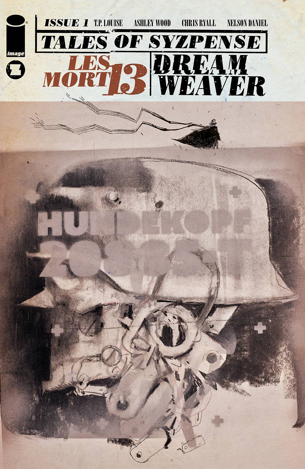 Tales of Szypense #1! SERIES PREMIERE The split book revival is underway at Syzygy! Every month, TALES OF SYZPENSE presents two titanic 12-page tales of terror and turmoil! Up first, courtesy of Lore co-creators T.P. LOUISE & ASHLEY WOOD, the lead-off mystery of "Les Mort 13" plays out on the surreal and mysterious island of Southport after a run-in with Eris, the goddess of strife... And then, proof that "power is wasted on the young"! CHRIS RYALL & NELSON DANIEL present "Dreamweaver," the story of an aging adventurer with a mystical secret who looks to pass on his abilities to the next generation of hero...until they have much greater success than he did, and he decides he wants those abilities back at any cost. Each issue features two "Les Mort 13" covers by WOOD, a "Dreamweaver" cover by DANIEL, and a Syzpenseful tribute cover to famous split books of the past.