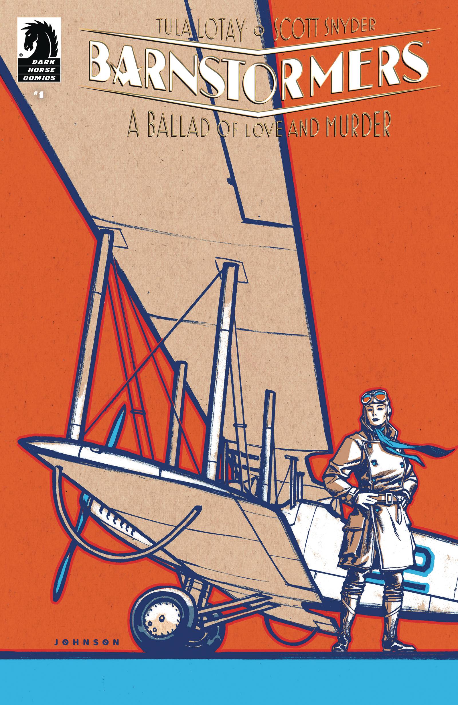 Barnstormers #1! Written by Scott Snyder with art by Tula Lotay! It's 1918- the early days of the barnstorming era, when pilots competed with each other by performing deadlier and more wondrous feats, as we've never seen it before. Pilot John Baron is back from the frontlines of the war, where he was injured. At eighteen-years-old, he's an adventurer who lives his life traveling from town to town in his plane, entertaining folks across the country, most of whom have never seen a car, let alone a plane. His world changes when he meets Helen, a young woman who shares his passion for aviation and adventure. They become a traveling act, flying from town to town, delighting folks with their antics. Helen even becomes John's wing-walker, climbing out on the wing of the plane mid-flight to perform death-defying acrobatics. Along the way they bond, confessing their secrets, and begin a romance in this lush, character-driven series that explores the early days of aviation and the evolving relationship and romance between two young pilots.