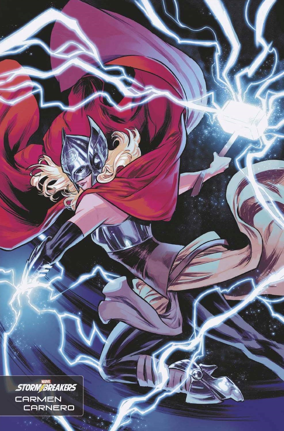 Jane Foster Mighty Thor #1 (of 5)! When Mjolnir comes crashing through Jane Foster's apartment window, she fears the worst has happened to Thor. As Asgard's greatest enemies - including Hela, Ulik the Troll and Enchantress - mount an assault on the Golden Realm, Jane must find Thor and save Asgard - even if that means she must once again risk her life to become Thor herself! Main cover by Ryan Stegman, Stormbreaker variant by Carmen Carnero, variant by Peach Momoko! $3.99
