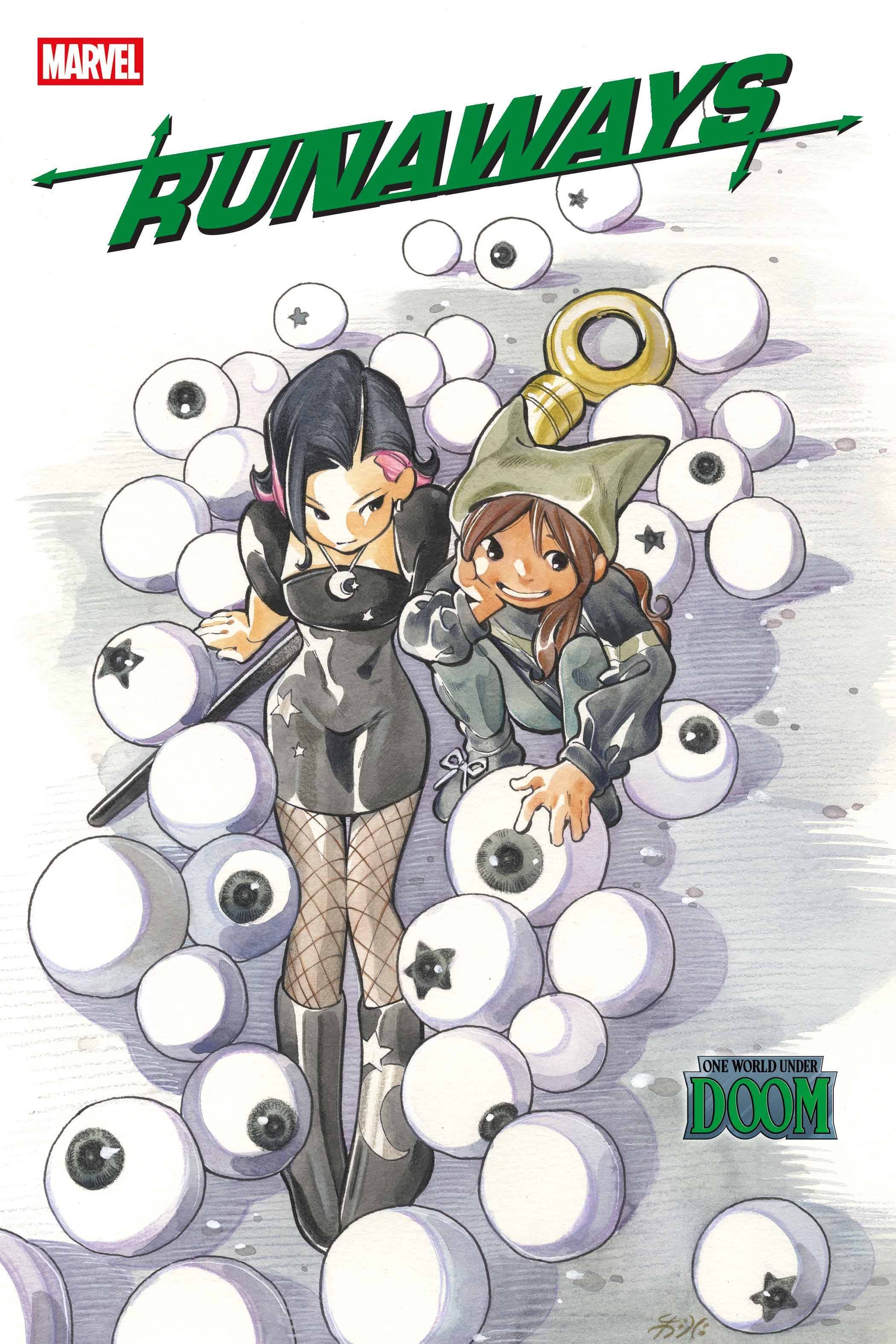 Runaways #1 (of 5)! WHAT HAPPENS WHEN YOU BREAK A FAMILY? Superstar writer Rainbow Rowell (SHE-HULK) returns to the Runaways with visionary artist Elena Casagrande (BLACK WIDOW, BLADE) for a new chapter...but Marvel's best and scrappiest found family has seen better days! Nico Minoru has lost her girlfriend, her best friend and her magic. With Karolina, Chase and Alex all out of the picture, Gert's doing her best to shake the remaining Runaways out of running on autopilot. But when Doctor Doom tries to reclaim one of their own - Doombot! - it's time to start running…