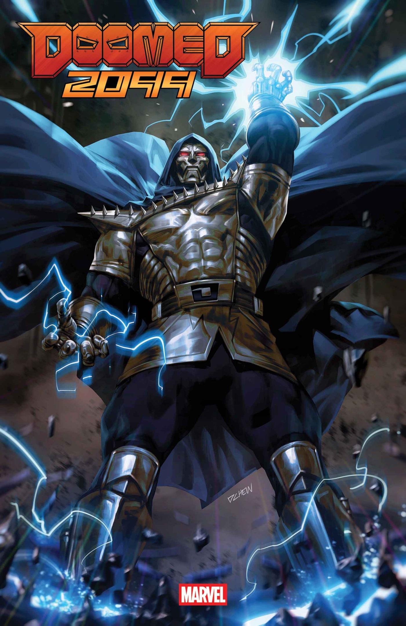 Doomed 2099 #1! The Future is Doomed! The world is Doom's…but does that include the world that is yet to be? A coalition from the future - including OLD MAN LOGAN, RACHEL SUMMERS PHOENIX, BISHOP, COSMIC GHOST RIDER, THE MAESTRO and DEATHLOK say otherwise. But will the arrival of Doom 2099 change the odds for the new Sorcerer Supreme? Is he there to back his past self…or destroy him forever?(NOTE: If you are subbed to One World Under Doom you will be auto-subbed to this new mini-series, unless you ask us NOT to!)