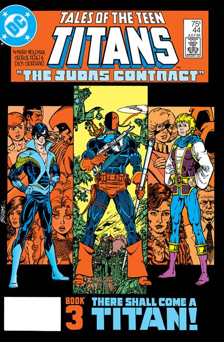 Tales of the Teen Titans #44 Facsimile Edition! With the Titans having been betrayed and captured, Dick Grayson dons a new costume and new identity as Nightwing. The facsimile reprint of part three of The Judas Contract also features the previously untold origin of Deathstroke the Terminator!
