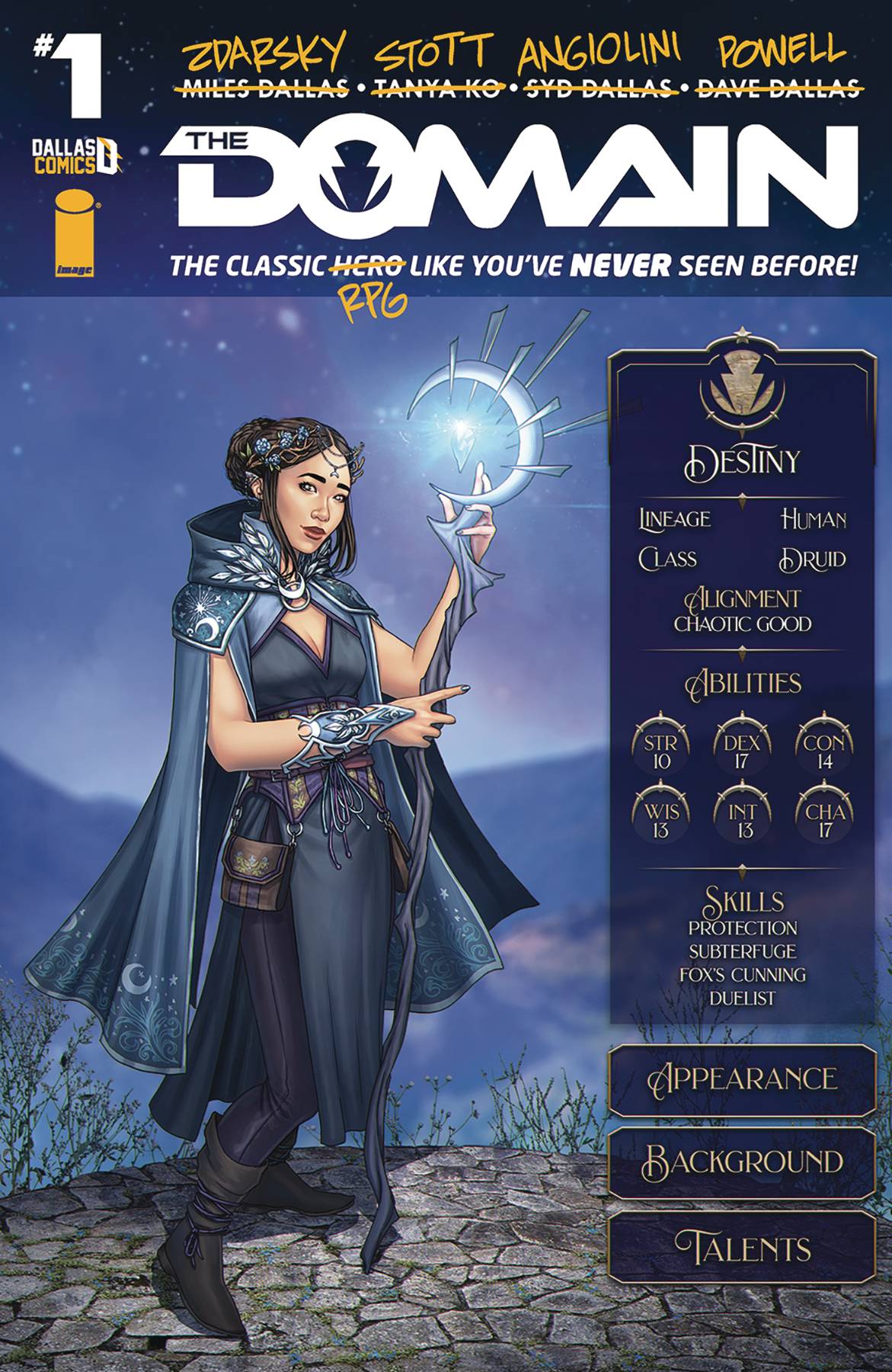 Domain #1 (of 5)! When three best friends discover a crashed UFO, they also discover technology that gives them incredible abilities! But there's a catch: only one of them can use the powers at a time! Can their friendship survive the power's temptation? In the pages of Image's Eisner-winning series, Public Domain, Syd Dallas and the team at Dallas Comics reimagine their classic character The Domain for a new audience, and... this is that comic! This special series, written by Chip Zdarsky (Batman, Newburn) with amazing art by Rachael Stott (Fantastic Four, Doctor Who) and Eren Angiolini (Justice League: Last Ride) is a classic superhero story for those coming in fresh, and a fun meta story for readers of Public Domain!