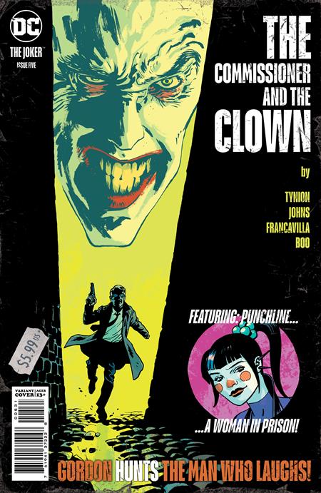 Next from DC comes Joker #5! The never-before-seen tale of The Joker’s first night in Arkham Asylum is finally revealed! When a lunatic in a clown suit tries to poison Gotham City’s reservoir and is placed in Arkham Asylum before his trial, Detective Jim Gordon realizes something’s different about this new inmate that could forever change the future of Gotham. Backup: Rising-star artist Sweeney Boo joins the series as things get worse and worse for Punchline and Bluebird. Punchline’s prison war against the Queen of Spades escalates, and no prisoner at Blackgate Penitentiary will be exempt from choosing sides. And after barely escaping death at the hands of Punchline’s former accomplice, will Bluebird have the will to continue her investigation and find the mysterious woman from Punchline’s past who has the answers she’s looking for? Cover A by Guillem March, Cover B by Kaare Andrews, Cover C by Sean Phillips! $5.99