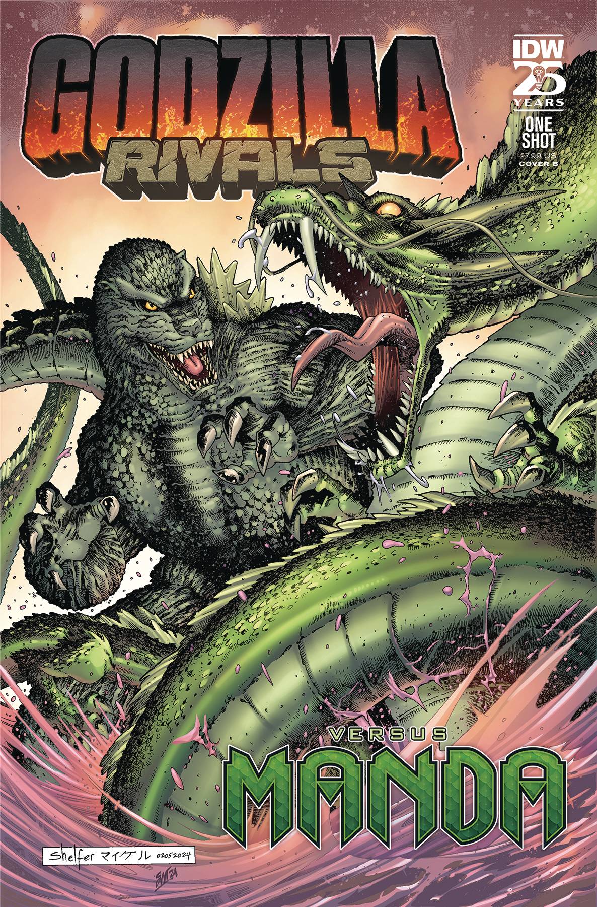 Godzilla Rivals Vs Manda #1 (one-shot)! Late into the night, the crew of a small fishing trawler off the coast of Australia is keeping busy by telling stories of the sea. Little do they know, they're moments away from happening upon a mysterious shipwreck... and the fearsome sea dragon Manda going toe to toe with Godzilla in the middle of the most brutal ocean brawl any sailor has ever seen.Can this small crew make it back to shore safely in the midst of this all-out kaiju battle? Join Jake Lawrence (Teen Dog, A Nice Long Walk) on a thrilling adventure on the high seas to find out!