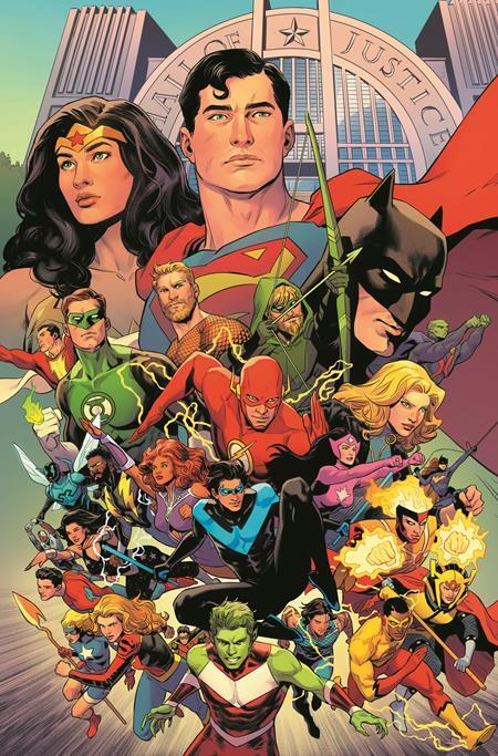 Justice League Unlimited #9! APOKOLIPS IS ON THE HORIZON...AND NO ONE IS SAFE! In the aftermath of the devastating events of We Are Yesterday, the Justice League is reeling from the Legion of Doom's wrathful rampage! But no time to rest for the protectors of our planet, as the secrets unlocked during their time-crossed duel have brought our heroes face-to-face with a mysterious Quantum Quorum, who has reason to fear that all of creation might soon come to an end. It's the next big step on the path of the All In saga in the epic epilogue to We Are Yesterday!