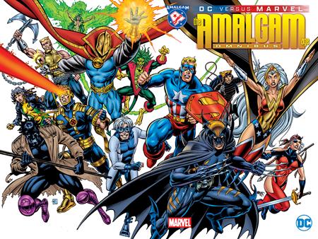DC Vs Marvel The Amalgam Age Omnibus HC! Superman versus the Hulk! Batman versus Captain America! Wolverine versus Lobo! Fighting against the clock, Access, a new hero traversing both worlds, will attempt victory through another means: The combination of DC and Marvel into one universe! The Amalgam age of comics is born! Batman and Wolverine become Dark Claw! Captain America and Superman become Super Soldier! Wonder Woman and Storm become Amazon! But will the existence of Amalgam prolong the inevitable demise of DC or Marvel? Will the Amalgam Universe fight back when Access attempts to return the universes to their former glory? This once-in-a-lifetime event is finally collected in a once-in-a-lifetime Omnibus! Featuring DC Versus Marvel #1-4, the DC/Marvel: All-Access #1-4, Unlimited Access #1-4, Amazon #1, Assassins #1, Bat-Thing #1, Bruce Wayne: Agent of S.H.I.E.L.D. #1, Bullets and Bracelets #1, Challengers of the Fantastic #1, Dark Claw Adventures #1, Doctor Strangefate #1, Exciting X-Patrol #1, Generation Hex #1, Iron Lantern #1, JLX Unleashed #1, Legend of the Dark Claw #1, Lobo the Duck #1, The Magnetic Men Featuring Magneto #1, Speed Demon #1, Spider-Boy #1, Spider-Boy Team-Up #1, Super Soldier #1, Super Soldier: Man of War #1, Thorion of the New Asgods #1, X-Patrol #1, and a story from Green Lantern #87. Includes introductions by Ron Marz and Karl Kesel, new afterwords by Mike Carlin and Tom Breevort, the trading cards, and a tome of never-before-seen material!