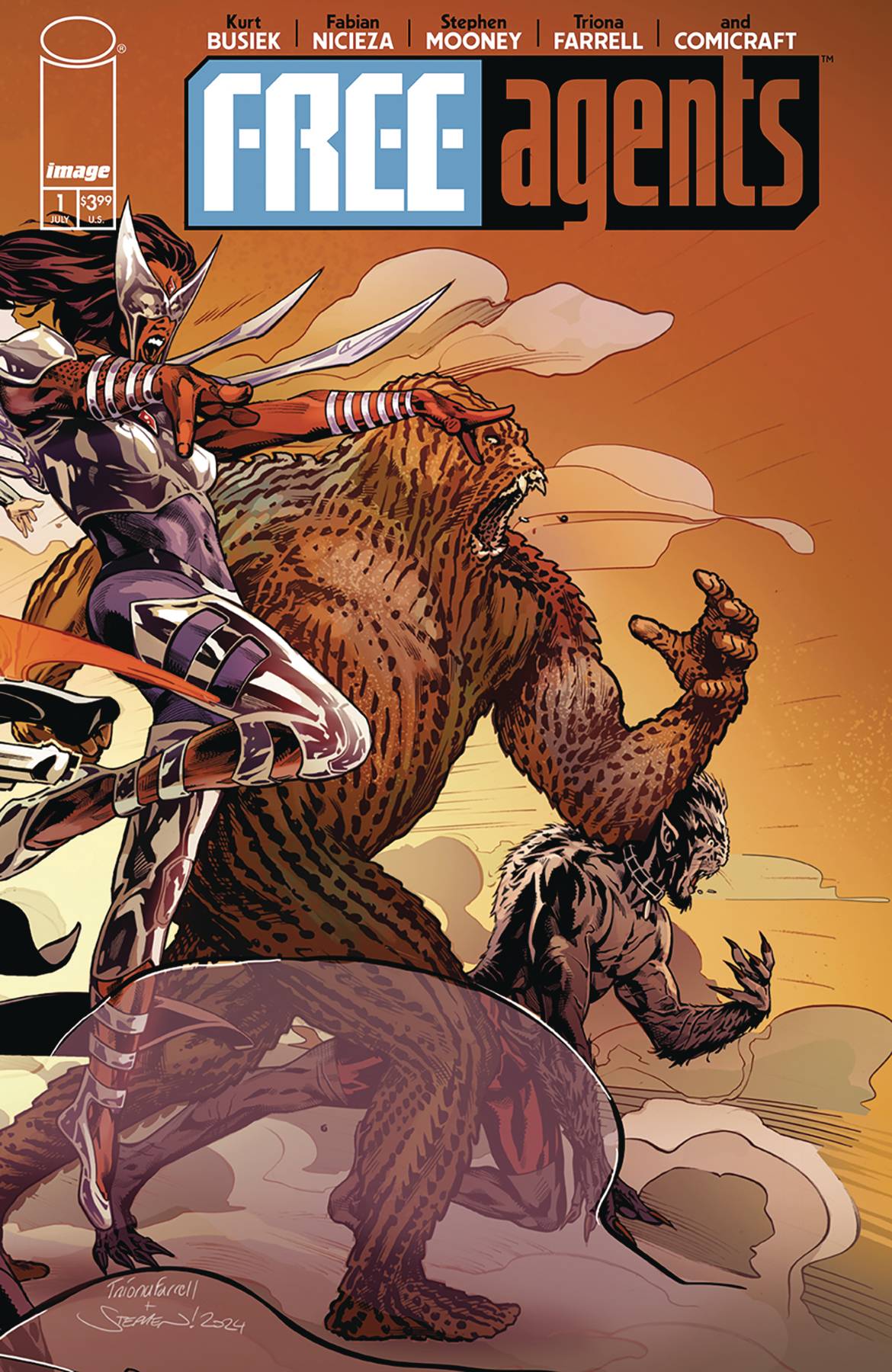 Free Agents #1! Giant-Size! Bargain Price! An all-new ongoing series! Kurt Busiek (Astro City), Fabian Nicieza (Deadpool), and Stephen Mooney (Half Past Danger) introduce a team of young veterans, survivors of a massive intergalactic war. Salvo. Pike. Katari. Shakti. Ridge. Maraud. Chalice. They've fought every day of their existence and won a terrible victory. Now they're stranded on Earth, free agents for the first time. But when relics from their long war appear, threatening their chance at better lives, their greatest battle begins. They've fought for a million planets. Can they fight to save their own souls?