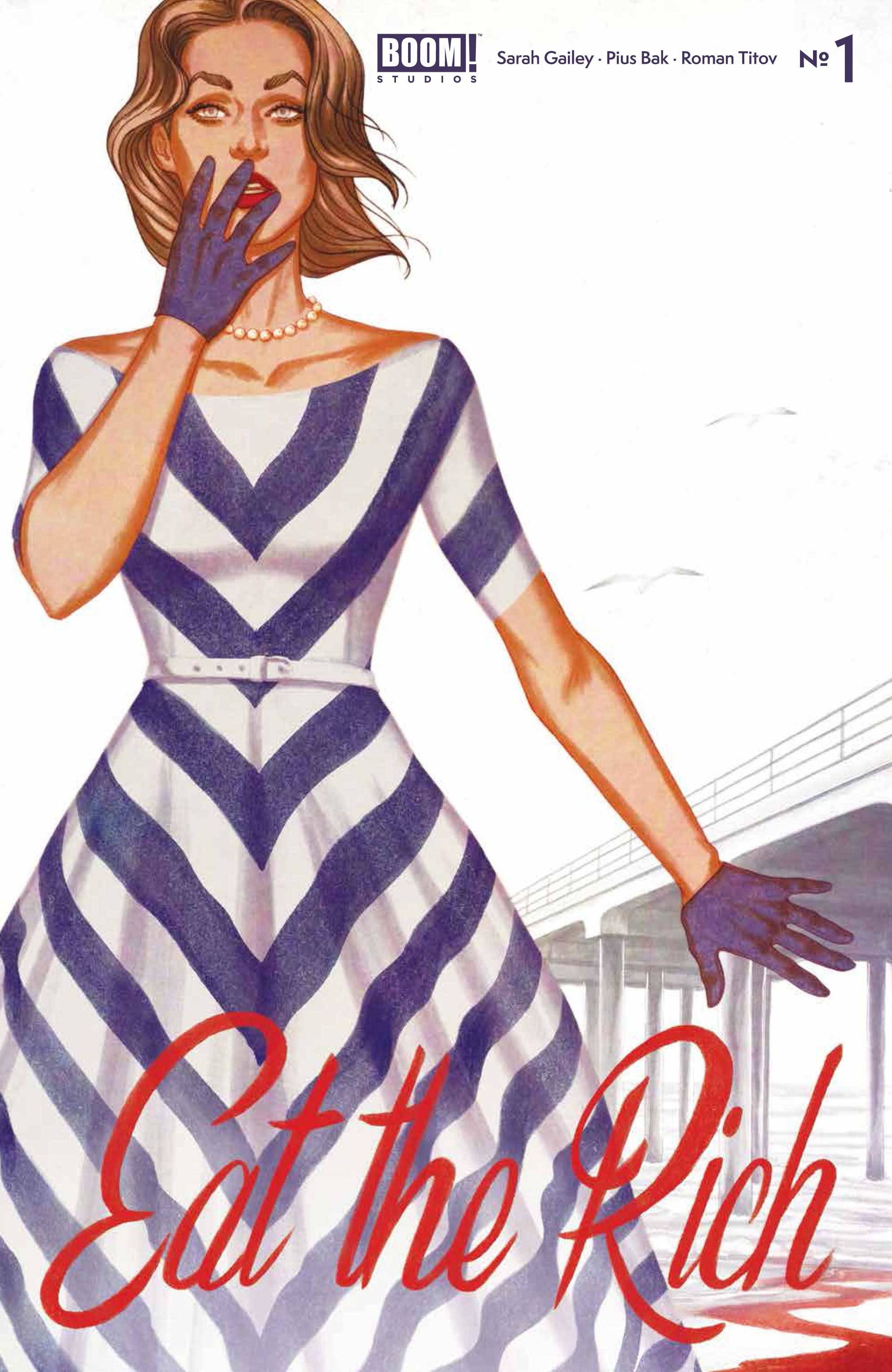 From Boom Studios this week comes Eat the Rich #1 (of 5)! What unspeakable horror eats away at the heart of Crestfall Bluffs? With law school and her whole life ahead of her, Joey plans to summer with her boyfriend Astor in his seemingly perfect hometown of Crestfall Bluffs. It's a chance to finally meet Astor's family and childhood friends, all while enjoying a vacation with every need attended to by servants. But beneath the affluent perfection lies a dark, deadly rot... will Joey discover the truth before it's too late, and if she does, can she survive to tell the tale? The bold, horrifying psychological thriller from Hugo Award-winning author Sarah Gailey (The Echo Wife, Magic For Liars) with artist Pius Bak (Firefly, The Magicians), perfect for fans of Stillwater and Nailbiter! A cover by Kevin Tong, B cover by Becca Carey, C cover by Jenny Frison! $3.99