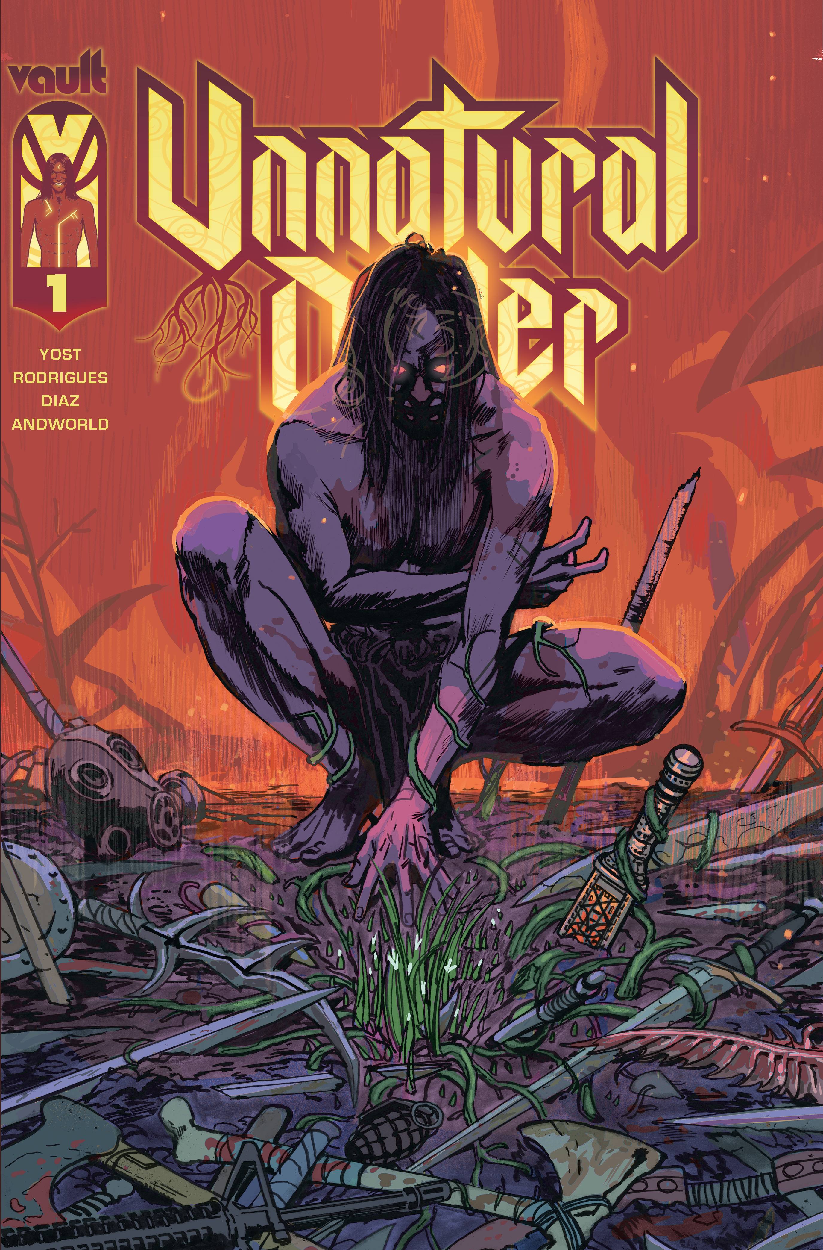 Unnatural Order #1! Chris Yost, co-creator of X-23, writer of hundreds of X-men issues and films and shows like Thor: Ragnarok and The Mandalorian, returns to comic books with Val Rodrigues to weave together Dark Fantasy and action-packed SciFi in UNNATURAL ORDER! After the fall of the Britons and the Roman invasion of Hibernia, the captive known only as the Druid is released, sending a darkness across the world...an age of horrors, of fire and entrails. As the innocent burn in the Wicker fields, those who would resist learn of the existence of a man who even the Druid fears. For it is this prisoner, a soldier from a different time, who alone knows the Druid's secret: this is not how the world is supposed to be.