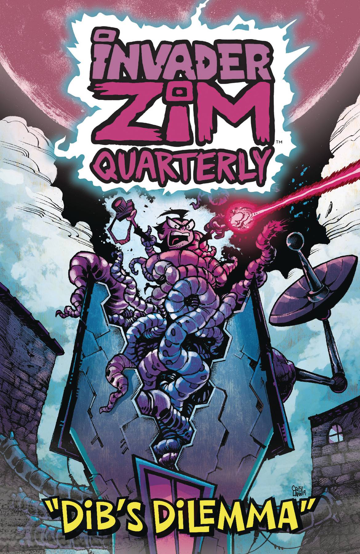 Invader Zim Quarterly #2! Millionnaire Max Beesworth, owner of the local honey mine, is hosting a CRYPTID CHALLENGE. Anyone can present a cryptid, whose veracity will be judged by none other than... noted skeptic, Professor Membrane! And this time, Dib's finally caught ZIM and will prove to the world once and for all that's he's a real alien threat! Unless, of course, GIR gets covered in bees, and mistaken for the infamous Beeboogoat, an undead goat made of bees. But why would that happen? Main cover by Warren Wucinich, variant cover by Dave Crosland. $5.99