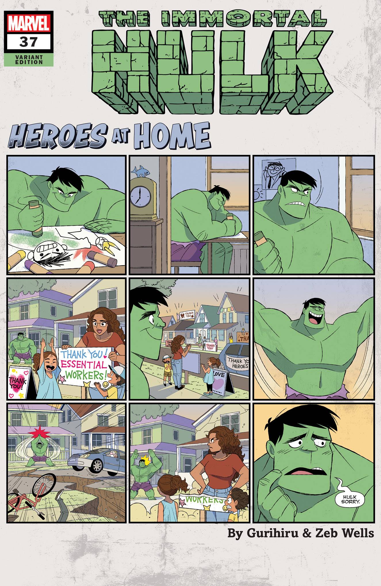 Next from Marvel comes Immortal Hulk #37! When Bruce Banner first came to Shadow Base, he was cut up into pieces and stored in jars. Now Shadow Base is under his control.But Bruce Banner was only the second test subject.Now... THE FIRST is free. Main cover by Alex Ross, timeless variant by Alex Ross, Heroes at Home variant by Gurihuru!