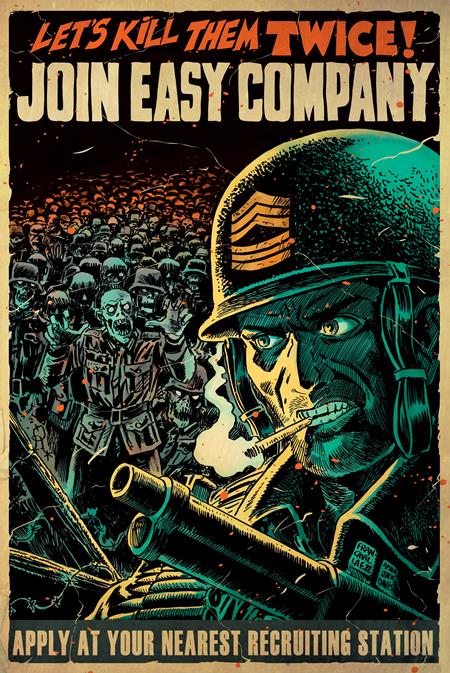 DC Horror Presents: Sgt Rock Vs the Army of the Undead #1 (of 6)! Berlin, 1944. The Nazis are besieged on all fronts by the Allied forces. Defeat is inevitable. But Hitler and his team of evil scientists attempt a last-ditch effort that may turn the tide of the war and rewrite history itself: a serum that resurrects their dead soldiers, stronger than they were in life, and sends them back into the battlefield. Now Sgt. Frank Rock and Easy Company have been dispatched into enemy territory to face off against the strangest, most horrific enemies they've ever encountered: Nazi zombies! Horror icon Bruce Campbell and comics legend Eduardo Risso bring you a terror-soaked Sgt. Rock tale like no other! Cover A by Gary Frank, Cover B by Franco Francavilla, Cover C Duffel Bag Gore variant by Frank Quietly! $3.99/$4.99