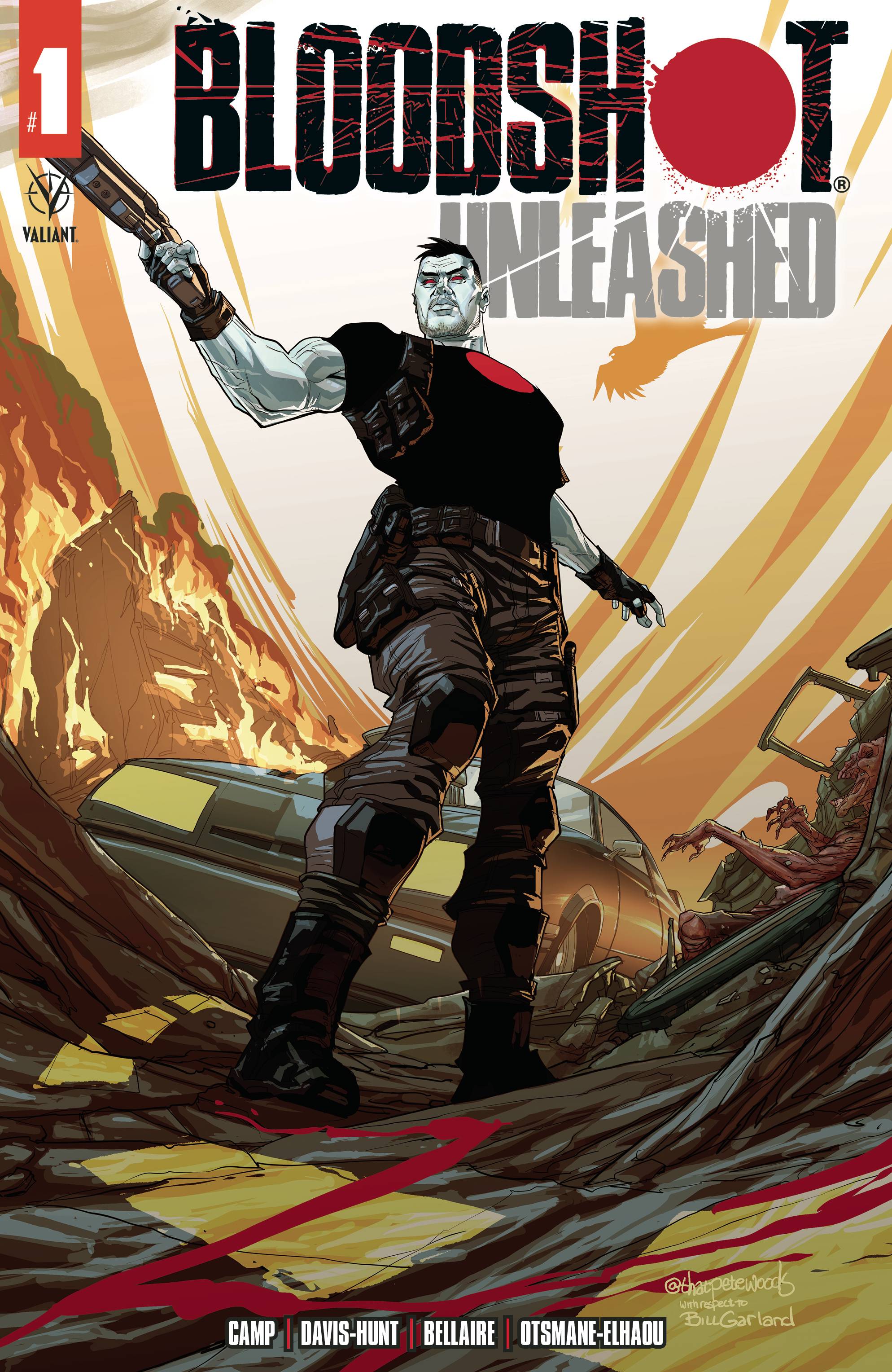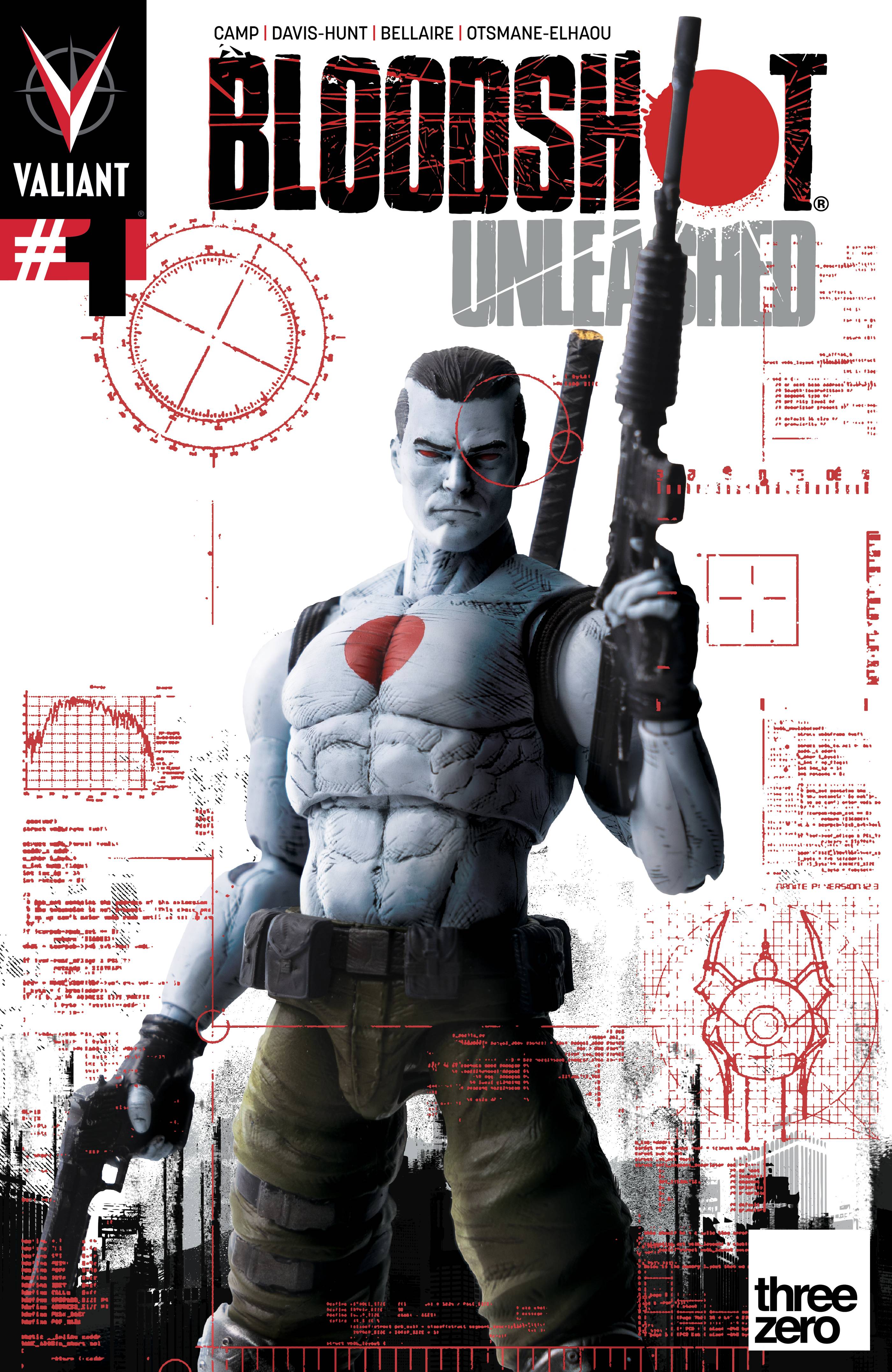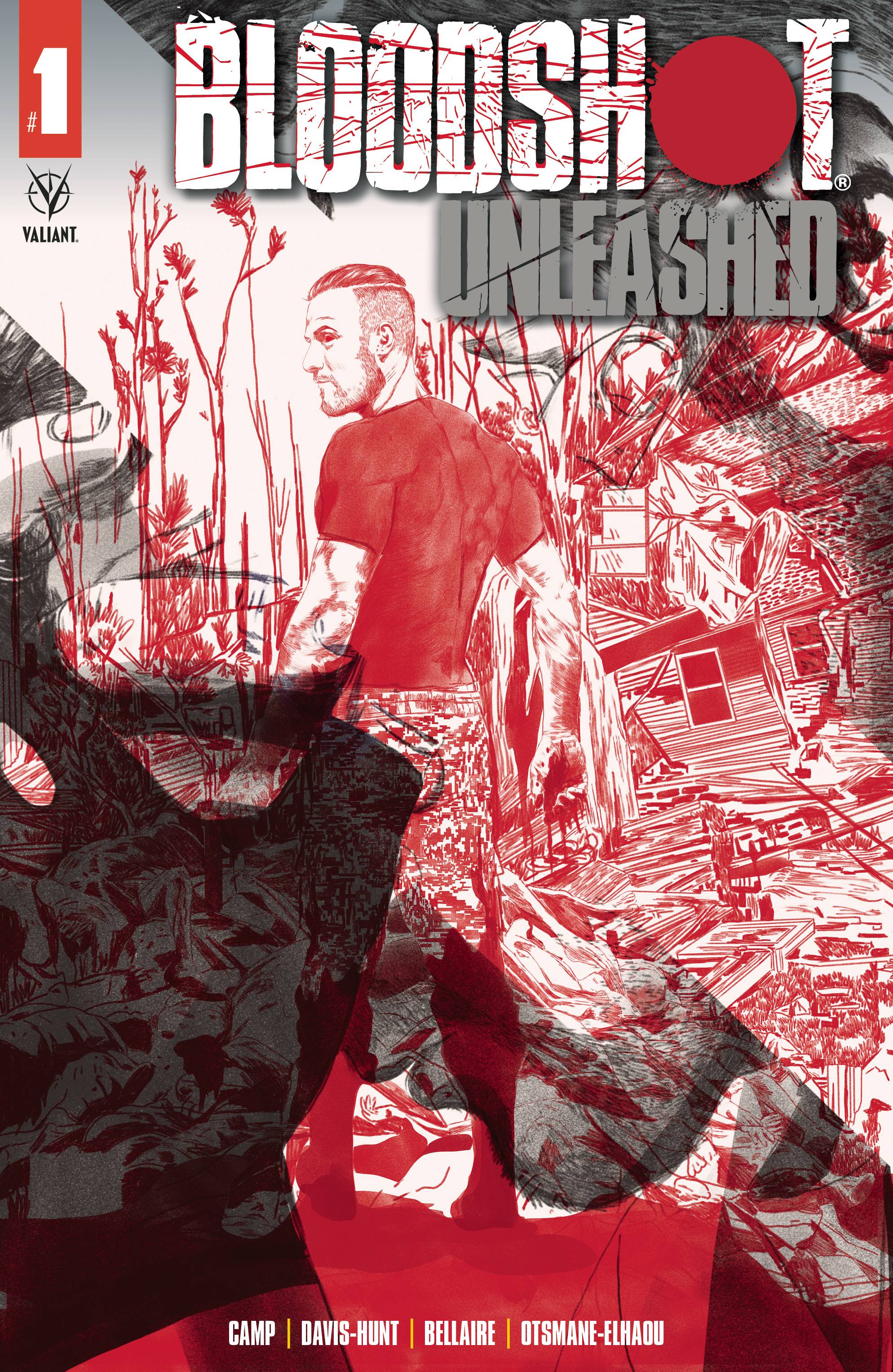 Bloodshot Unleashed #1! Dangerous super soldiers and bloodthirsty living weapons have mysteriously escaped into the world to wreak havoc across the dying towns and forgotten farms of America. Now, Bloodshot must take up arms again to travel across the country hunting down these violent monsters, battling his own demons, and defending the most defenseless. Deniz Camp (Agent of W.O.R.L.D.E.) and Jon Davis-Hunt (SHADOWMAN) join forces to unleash Valiant Entertainment's first Mature Readers title that puts the BLOOD in BLOODSHOT. Cover A by Jon Davis-Hunt, Cover B by Nicole Rifkin, Cover C by Pete Woods, Cover D action figure, Cover E Blank. $3.99
