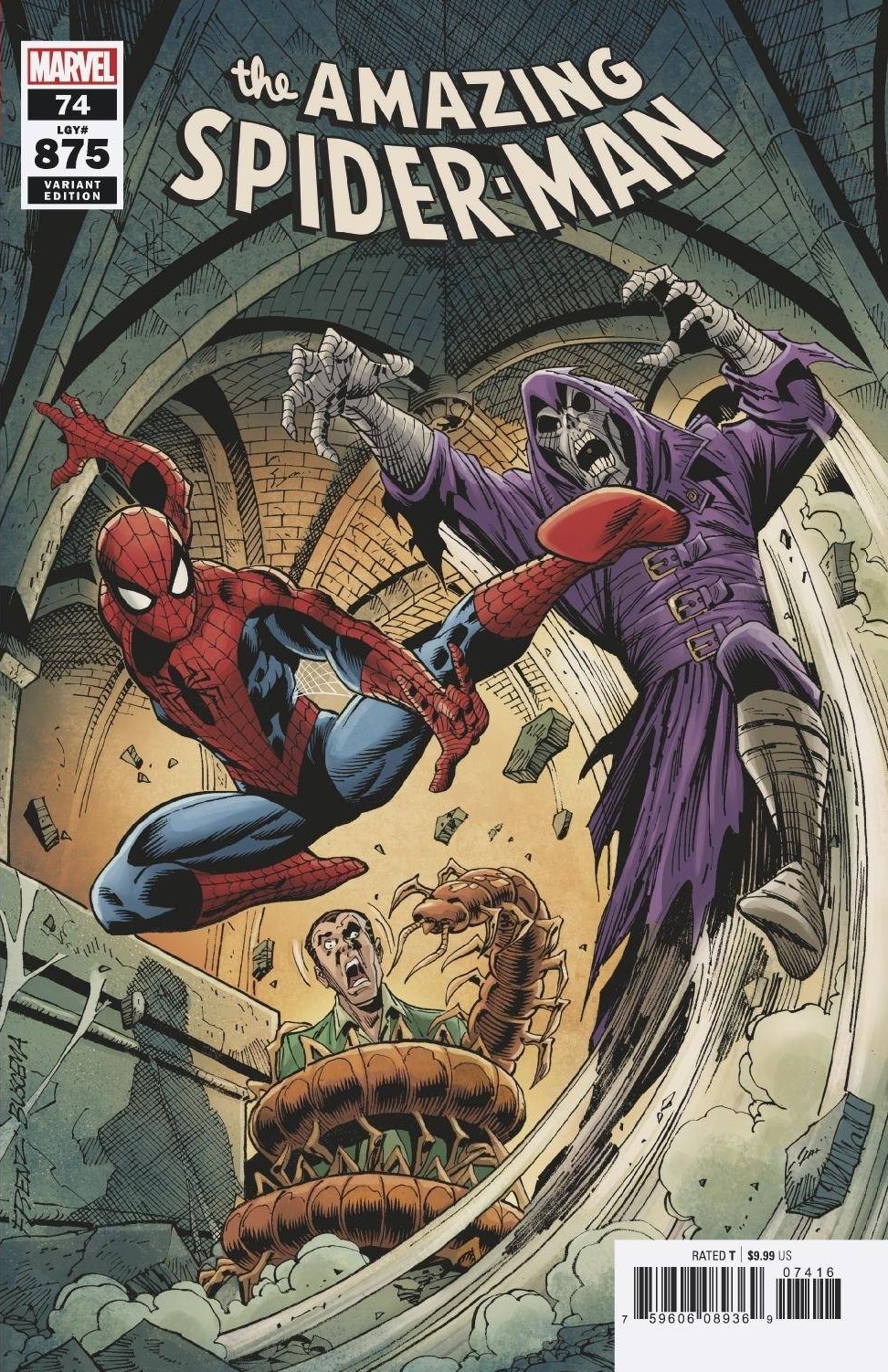 From Marvel this week comes Amazing Spider Man #74! It's AMAZING SPIDER-MAN #875, and the whole ASM team is coming together to bring you a massive issue that is the culmination of three years of AMAZING SPIDER-MAN! It's all lead to this... "Hunted," "Sins Rising," "Last Remains," "King's Ransom," "Chameleon Conspiracy," "Sinister War"...and so much more all led to this climax and conclusion to Nick Spencer's landmark run on the best comic book in the world. What will happen with Peter and MJ, Mysterio, J. Jonah Jameson, Norman Osborn, Aunt May and Kindred?! FIND OUT HERE! Main cover by Pat Gleason, variant by Marco Chechetto, variant by Marcelo Ferreria, variant by Ron Frenz, Carlos Gomez variant, Alex Maleev variant, Peach Momoko variant, Sarah Pichelli Miles variant, Federico Vincentini variant, Leinil Yu variant! $9.99