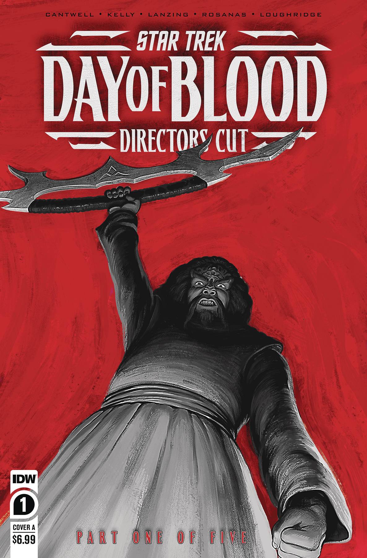 Star Trek Day of Blood Directors Cut #1! Revisit the first chapter in Kahless' Day of Blood and join the crew of icons led by the emissary known as Benjamin Sisko (Star Trek) and the renegades who follow a desperate and violent Worf (Star Trek: Defiant) in the fight for the sake of the galaxy! Day of Blood #1 Director's Cut pairs the original issue with a behind-the-scenes look at progress work from Jackson Lanzing, Collin Kelly, Christopher Cantwell, and Ramon Rosanas.