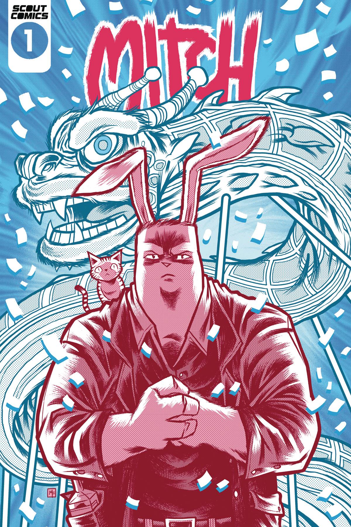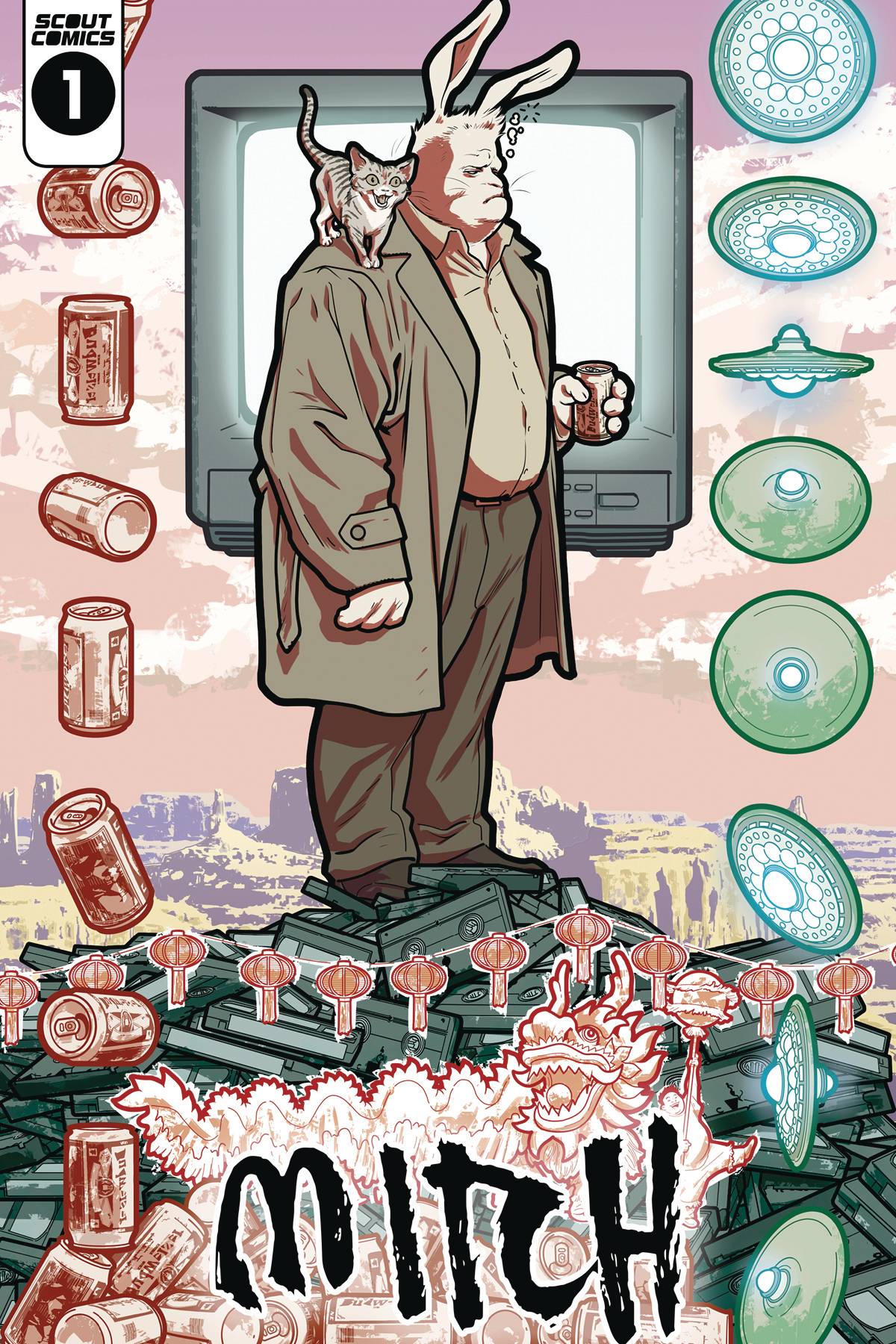 Mitch #1! Mitch mixes comedy, science fiction and urban fantasy, with character Mitch as the anthropomorphic lead, juxtaposed to the seemingly realistic world of the late 90s. It's chunky Roger Rabbit with a bad temper meets Indiana Jones, set in a Sam Raimi's looking cityscape. It's a story about one furry guy on a quest to find his true origins, unintentionally stumbling into adventure, mystery, and a secret ongoing extraterrestrial conflict over Earth and its unsuspecting occupants.