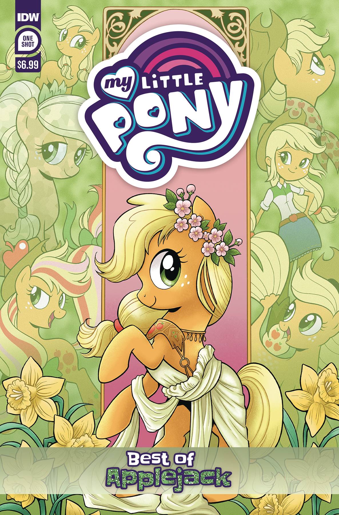 My Little Pony Best of Applejack #1 (one-shot)! Enter Ponyville's resident farm gal! From uncovering a supersecret family pie ingredient to teaching her little sis the meaning of courage, revisit some of the moments that made Applejack the most dependable pony around! Collecting My Little Pony: Friendship Is Magic #72 and #85, and My Little Pony: Friends Forever #8 and #15.