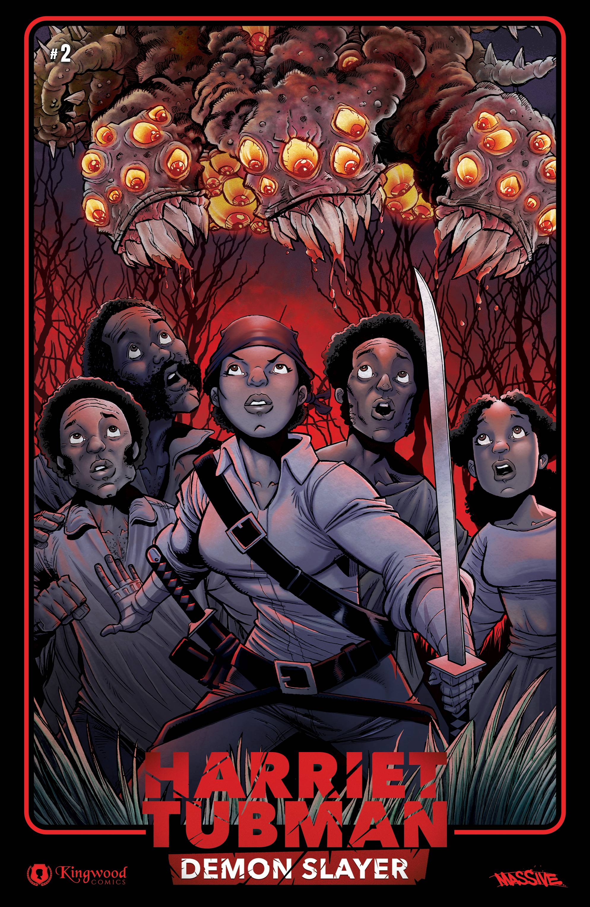 Harriet Tubman Demon Slayer #2! Django Unchained meets Buffy The Vampire Slayer in David Crownson's Harriet Tubman : Demon Slayer, a supernatural comic series based on the true life of the freedom fighter herself that is flavored with genre liberties in the spirit of Abraham Lincoln: Vampire Hunter. Soon to be an original series on Disney+! When slave owners can't stop the formidable ninja warrior Harriet Tubman, they call on the help of Vampires, Werewolves, Witches, and Demons to stop her.