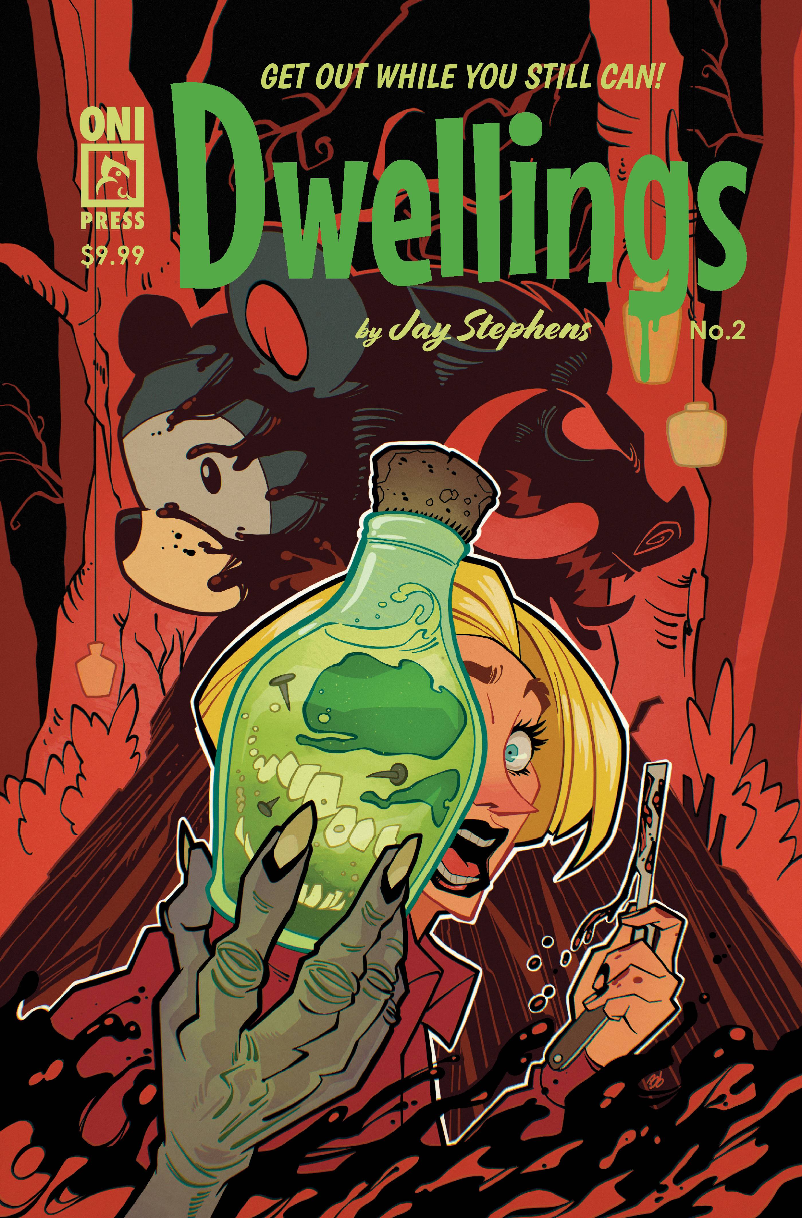 Dwellings #2 (of 3)! 72 pages of terror returns in another triple-sized, bi-monthly dose of the series that has the comic industry screaming: Dwellings! Emmy Award-winning, Eisner-Award-nominated cartoonist and animator Jay Stephens (Secret Saturdays, Jetcat Clubhouse) welcomes you back to Elwich-the small town where the secrets run deep, the quiet streets harbor murderous intent, and even the spirits are prone to fits of jealous rage! In this issue: Two must-read tales of supernatural psychosis and paranormal paranoia! First: Don't bite the hand that feeds you in "Quiet, Suki," especially if that hand is a talking puppet! Then: Investigative reporting meets infrasound in "Sound Mind," as the ghosts of the past come roaring forth.
