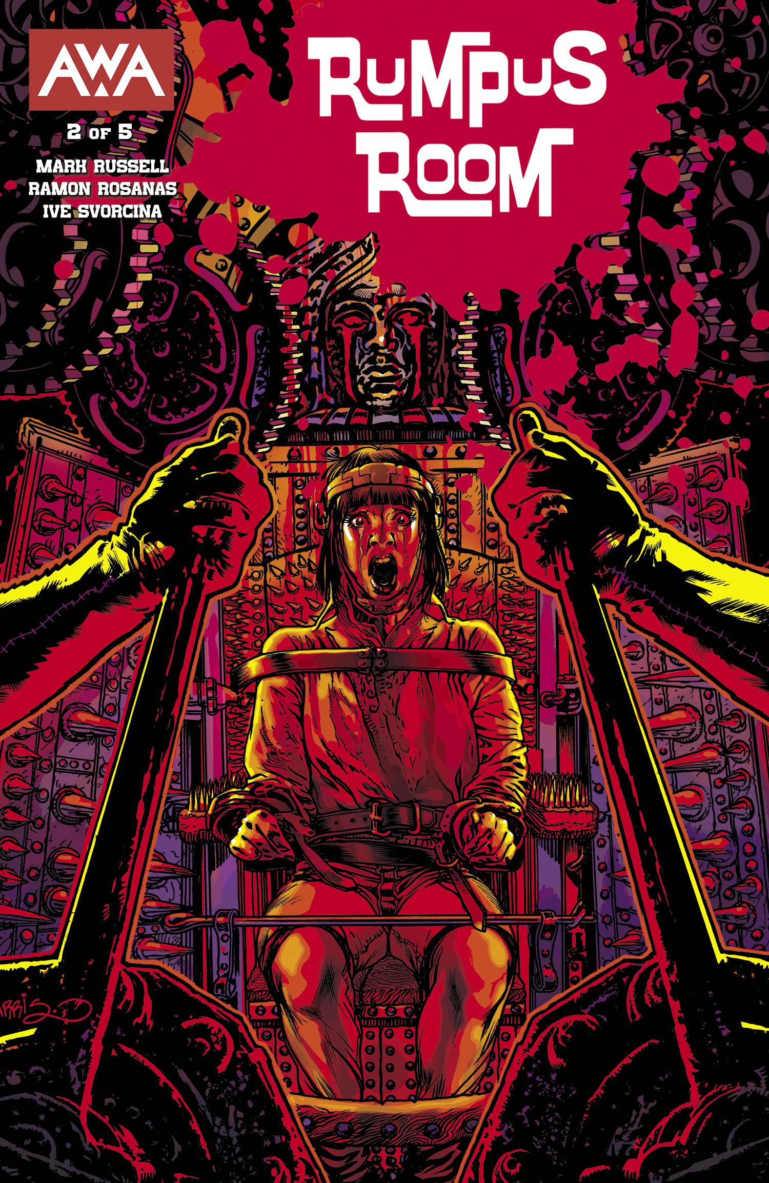 Rumpus Room #2 (of 5)! Detective Hernandez is trapped in billionaire Bob Schrunk's basement prison known as the "Rumpus Room" - and while she's stuck there, she's going to get to know her fellow inmates and learn how they had wronged Schrunk and earned their fate. Meanwhile, Schrunk is losing control of his tech company and must consolidate his position with the board of directors. Plus, what's the secret of the billionaire's collection of bizarre art?