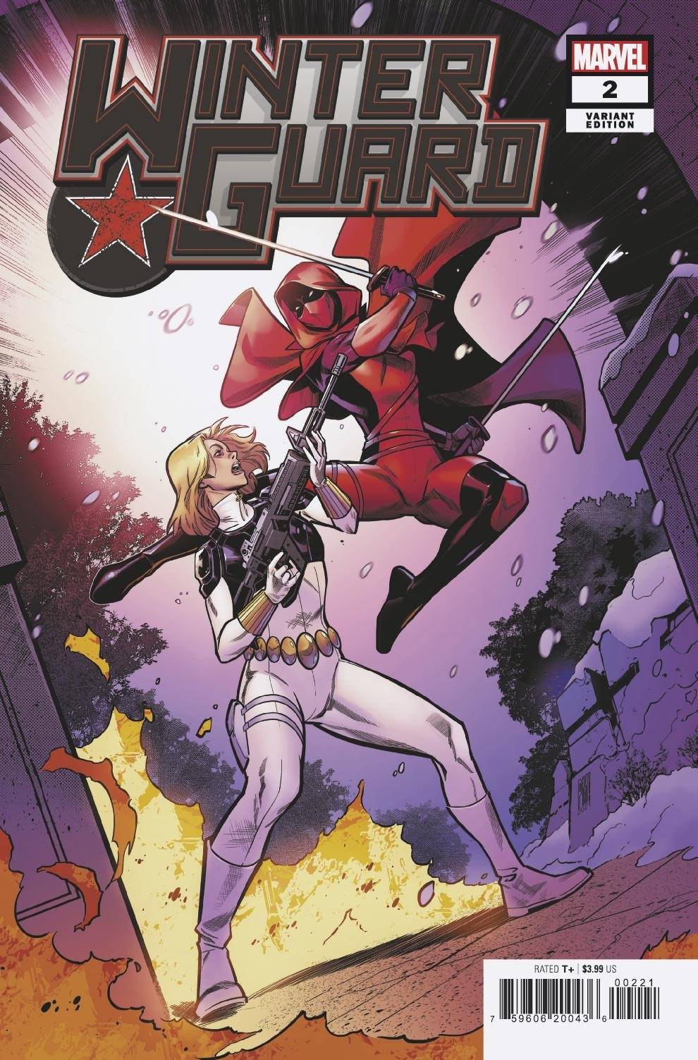Winter Guard #2! The Winter Guard team must split up in hopes of catching up to Red Guardian and the White Widow, who seem to always be one step ahead of them. It's a race across Russia as the team must venture to Red Guardian's hometown in hopes of discovering the secrets of project SNOWBLIND. But with Crimson Dynamo in critical condition, can the Guard keep it together to uncover the truth in time? Main Cover by Toni Infante, variant by Paco Medina! $3.99