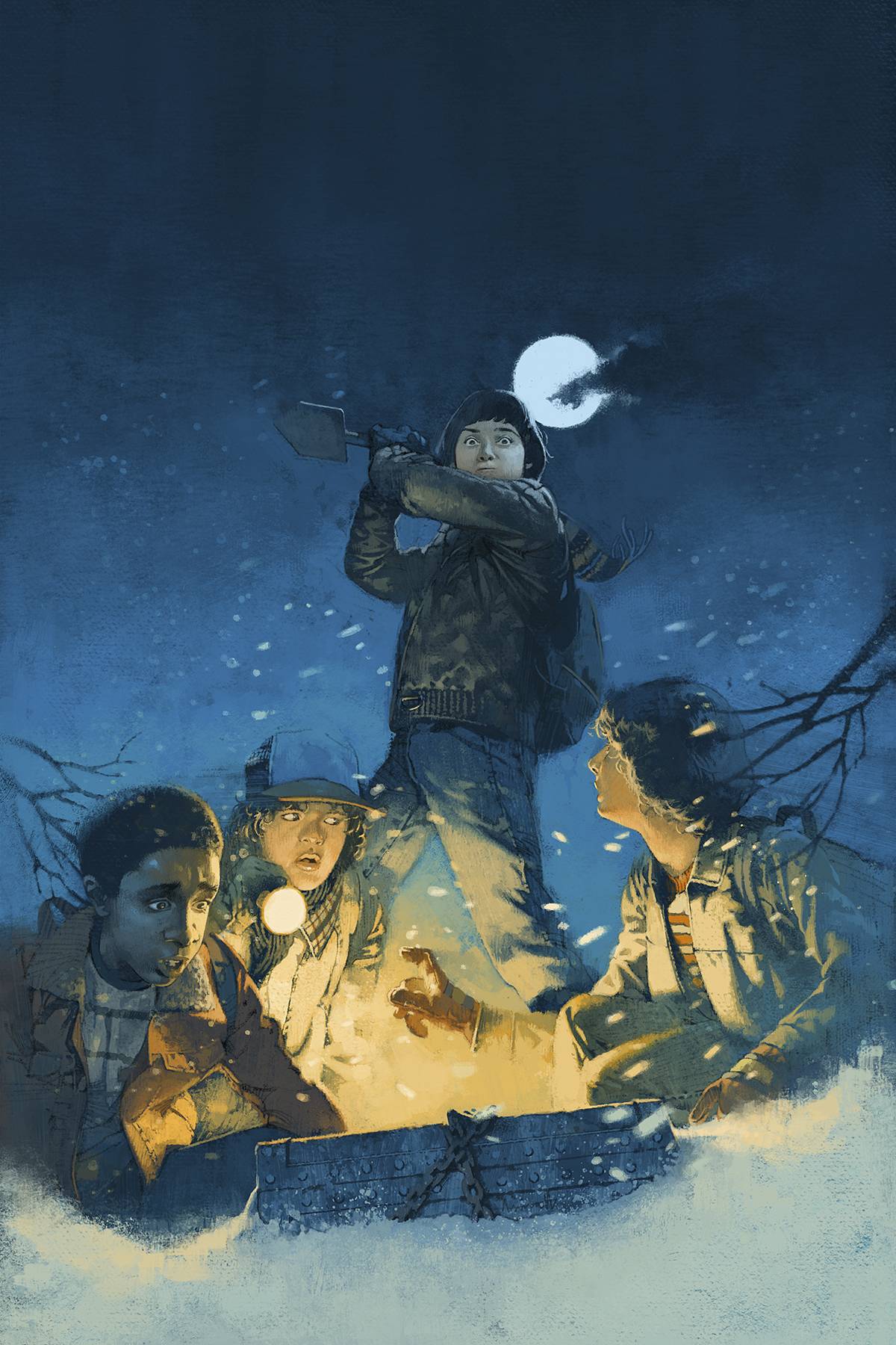 Stranger Things: Tomb of Ybwen #2 (of 4)! Upon finding mysterious maps left behind by the deceased Bob Newby, Will takes off on his own, determined to find whatever pirate treasure is hidden near the riverbanks of Hawkins. As a heavy snow blankets the town, Lucas, Dustin, and Mike must find Will before he freezes to death! Cover A by Marc Aspinall, Cover B by Caspar Wjingaard, Cover C by Pius Bak, Cover D by Rafael Sarmento! $3.99