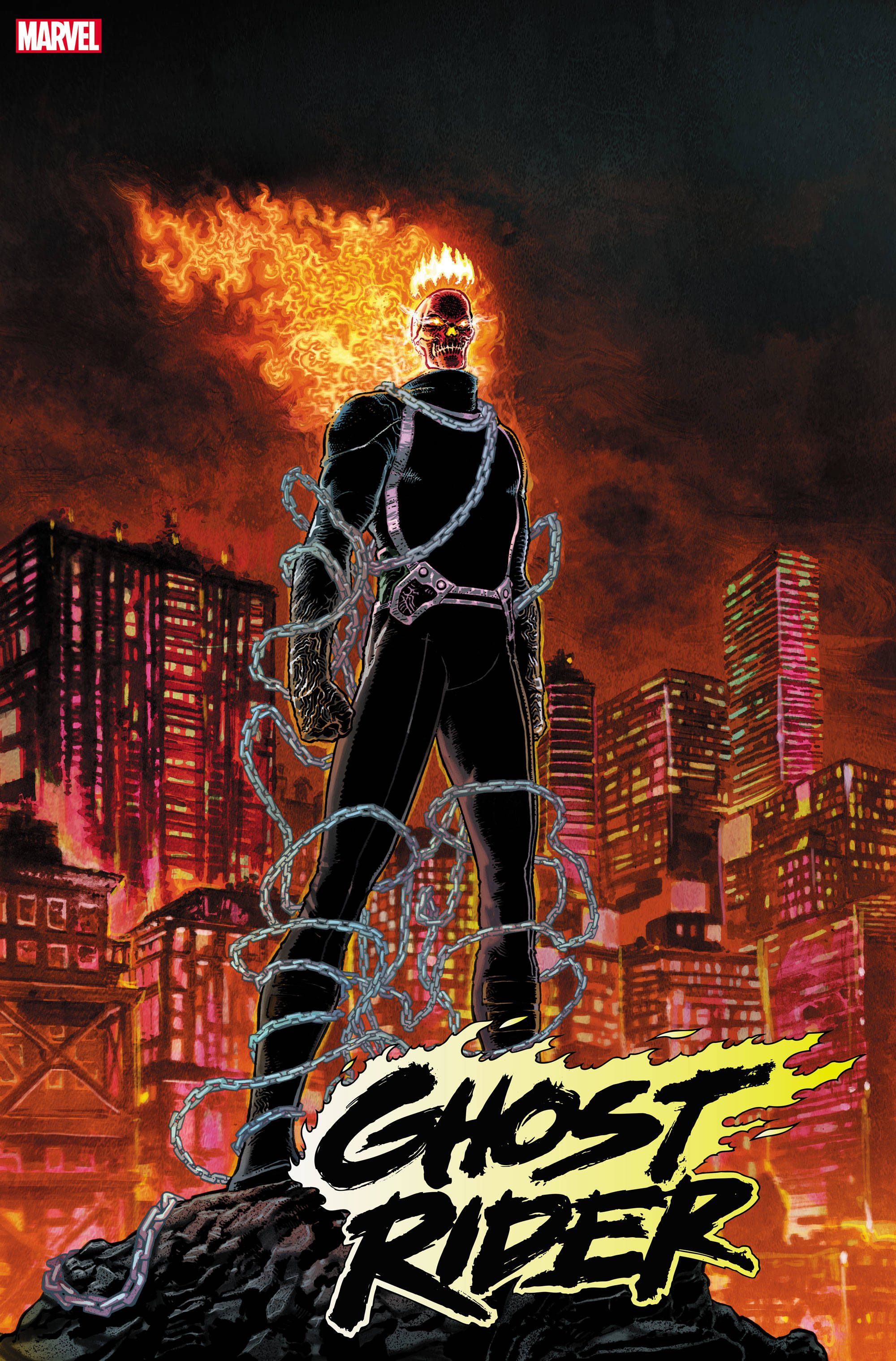 Next from Marvel, Ghost Rider #1!!! The Brothers Ghost Rider are back! Johnny Blaze ain't just the king of Hell-he's the warden too. He's the first line of defense between the demonic hordes trying to escape the joint and the lords of other hells making a play for his throne and all the power that comes with it - including a certain evil queen from his past! Meanwhile, Danny Ketch never wanted to be a Ghost Rider. Now that his brother's in charge downstairs, Ketch must take on the duty of Earth's Spirit of Vengeance full-time-no matter how much he'd rather be doing anything else... Superstar creative team ED BRISSON (EXTERMINATION) and AARON KUDER (GUARDIANS OF THE GALAXY) redefine the Marvel Universe's supernatural underbelly for a brutal new era! PLUS: the first installment of the Caretaker Chronicles! Forget everything you thought you knew! Main cover by Aaron Kuder, Black Blank Cover, King of Hell Kuder Varaint, Razzah Wraparound Teaser Cover.