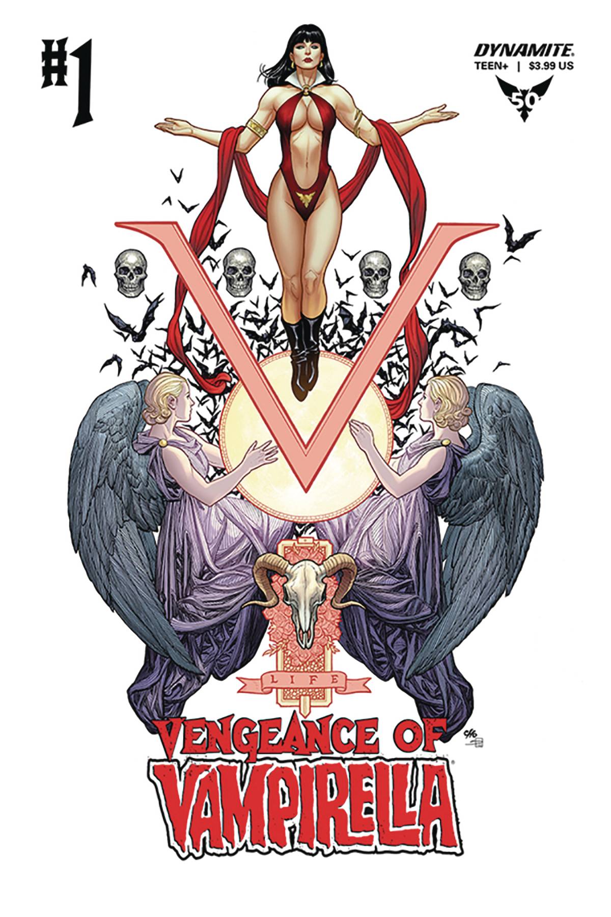 Next from Dynamite and in stores on 10/2 is Vengeance of Vampirella #1! Originally debuting in 1994, Vengeance of Vampirella portrayed a more savage and feral look at the Daughter of Drakulon. Now, for the 50th Anniversary of Vampirella, original series writer Tom Sniegoski (joined by the incredible art of Michael Sta. Maria) is back and issue #1 features a host of incredible cover artists.Set 25 years after the initial series, Vampirella is Dead!? Long Live Vampirella!Humanity holds on, but barely, the playthings and slaves of a multitude of supernatural monstrosities that have made the earth their own. Mistress Nyx continues to rule the planet, her Chaos Lords reigning over the various regions of the world, but she is getting bored - There's no one to challenge her! That is, until a small, but determined rebellion finds what could be their savior or seal their doom! Cover A by Josh Middleton, Cover B by Frank Cho, Cover C by Ben Oliver, Cover D by Lucio Parillo, Cover E Cosplay cover.