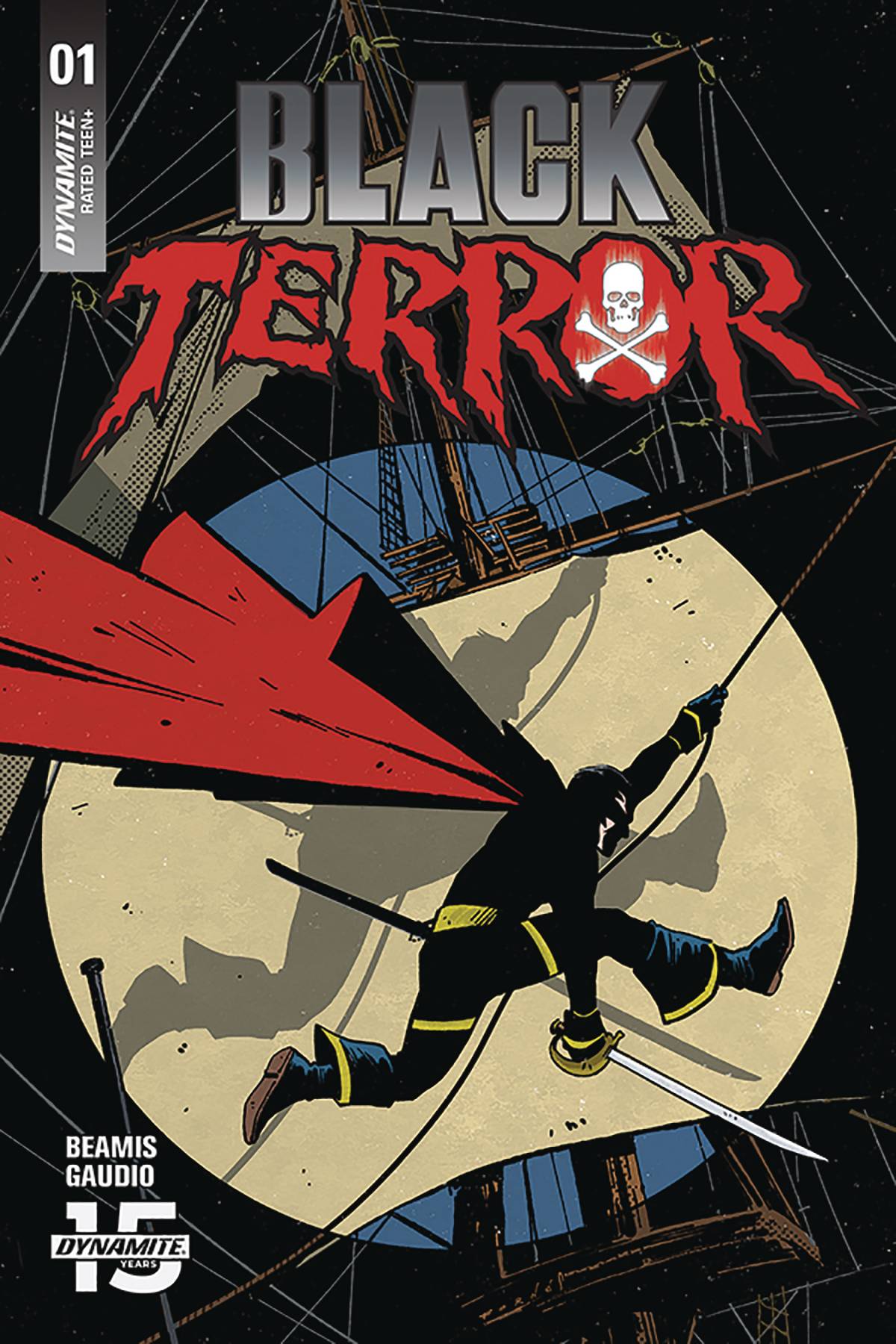 From Dynamite and in stores on 10/2 is Black Terror #1! Bob Benton has settled into his "boring" life of being a pharmacist. A daily routine, a co-worker he has a crush on...these are the things that keep him happy. But creeping below the surface are his memories of being a hero. Struggling against his urges to fight crime, he is suddenly sent down a path he thought he had left behind, wanting...needing to be a vigilante, ready to once again punch crime in the face and become the Black Terror!Join Max Bemis (Moon Knight, Foolkiller) and Matt Gaudio (John Wick, Bettie Page) as they take you for a ride through the life of superhero and all the weirdness along the way. Main cover by Franco Francavilla, Cover B by Jorge Fornes, Cover C by David Nakayama, Cover D by Erica Henderson, Cover E by Adam Gorham.