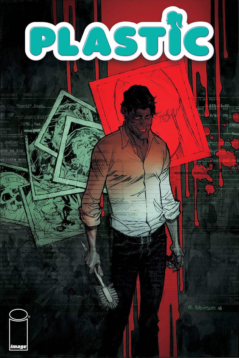 Plastic #1 also hits stands this week, written by Doug Wagner with art by Daniel Hillyard. Retired serial killer Edwyn Stoffgruppen is in love with Virginia, a girl he "met online." Her affection quiets his vile urges. Together, they tour the back roads of America in their LTD, eating doughnuts and enjoying their healthy appetites for each other. Life is good...until a Louisiana billionaire kidnaps Virginia, forcing Edwyn to kill again in exchange for her freedom. Oh, and did we mention that Virginia is a sex doll?