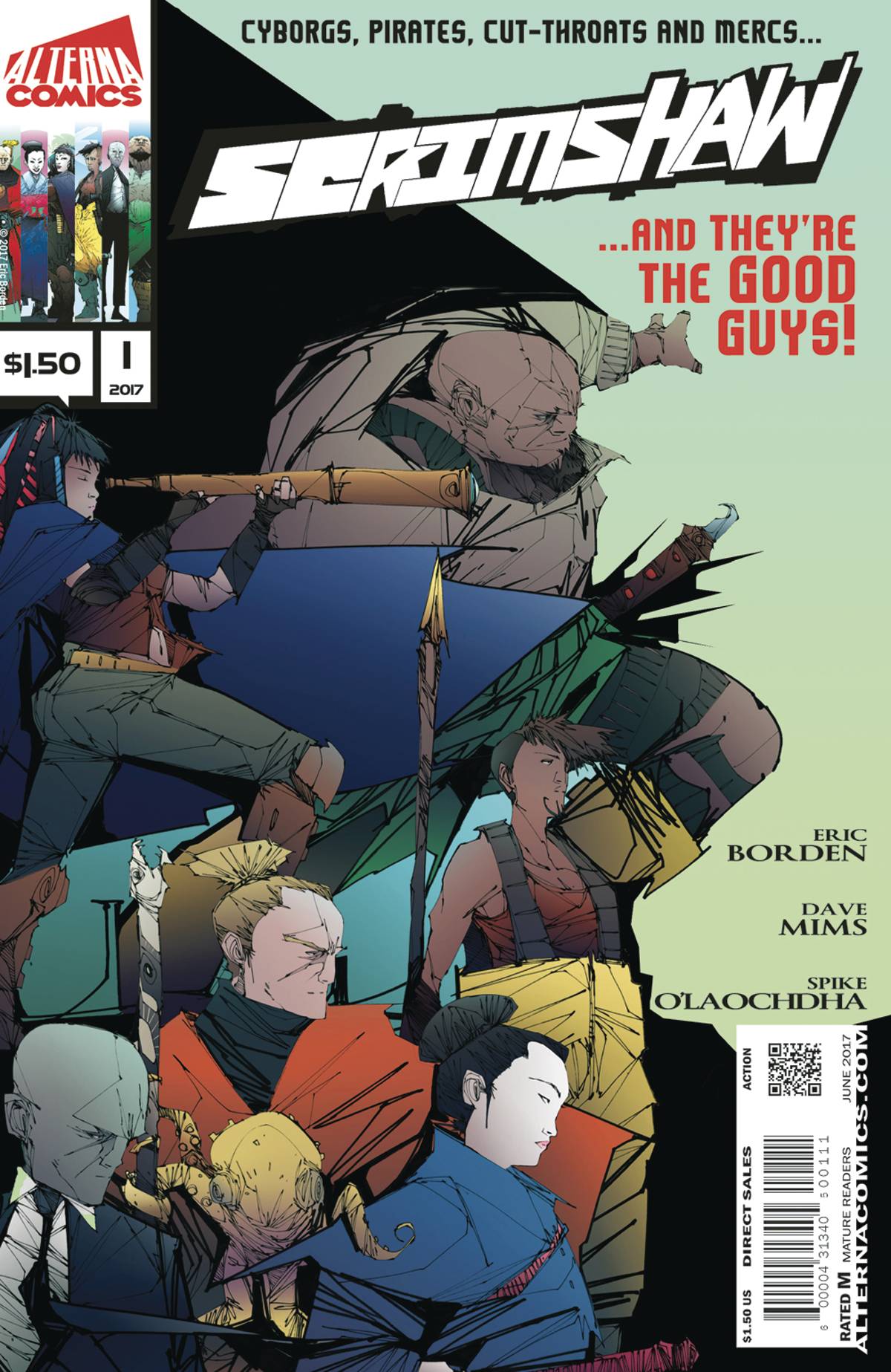 From Alterna Comics, a new series starts off at their awesome $1.50 price point on newsprint! Scrimshaw #1 is written by Eric Borden with art by Dave Mims! With the planet ravaged by war, ruthless corporations have the world's governments in their pockets. Faced with impossible odds, Captain Hans Tanaka and the rest of the crew of the Runaway Horse have been branded as pirates, cut-throats, mercs... and the good guys!