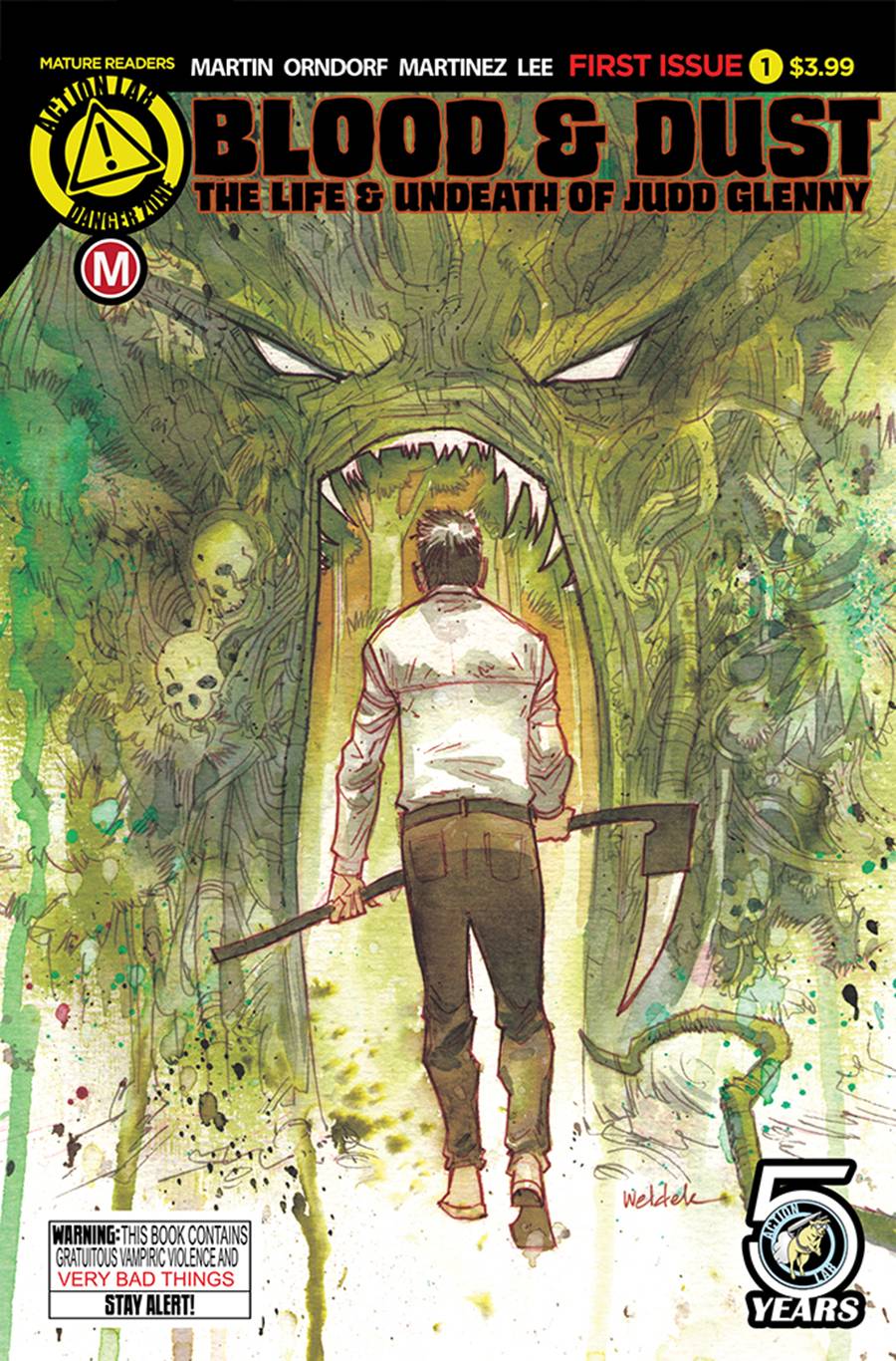 From Action Lab this week, a new series debuts called Blood And Dust #1. This new series follows Judd Glenny, the first American Vampire, who once terrorized the West as its most feared predator, but for more than 40 years now he’s spent his days in peace reduced to little more than a babysitter for his own vampire offspring. But when the evil in the swamp around his town gets ahold of one of his grandkids, everything changes!