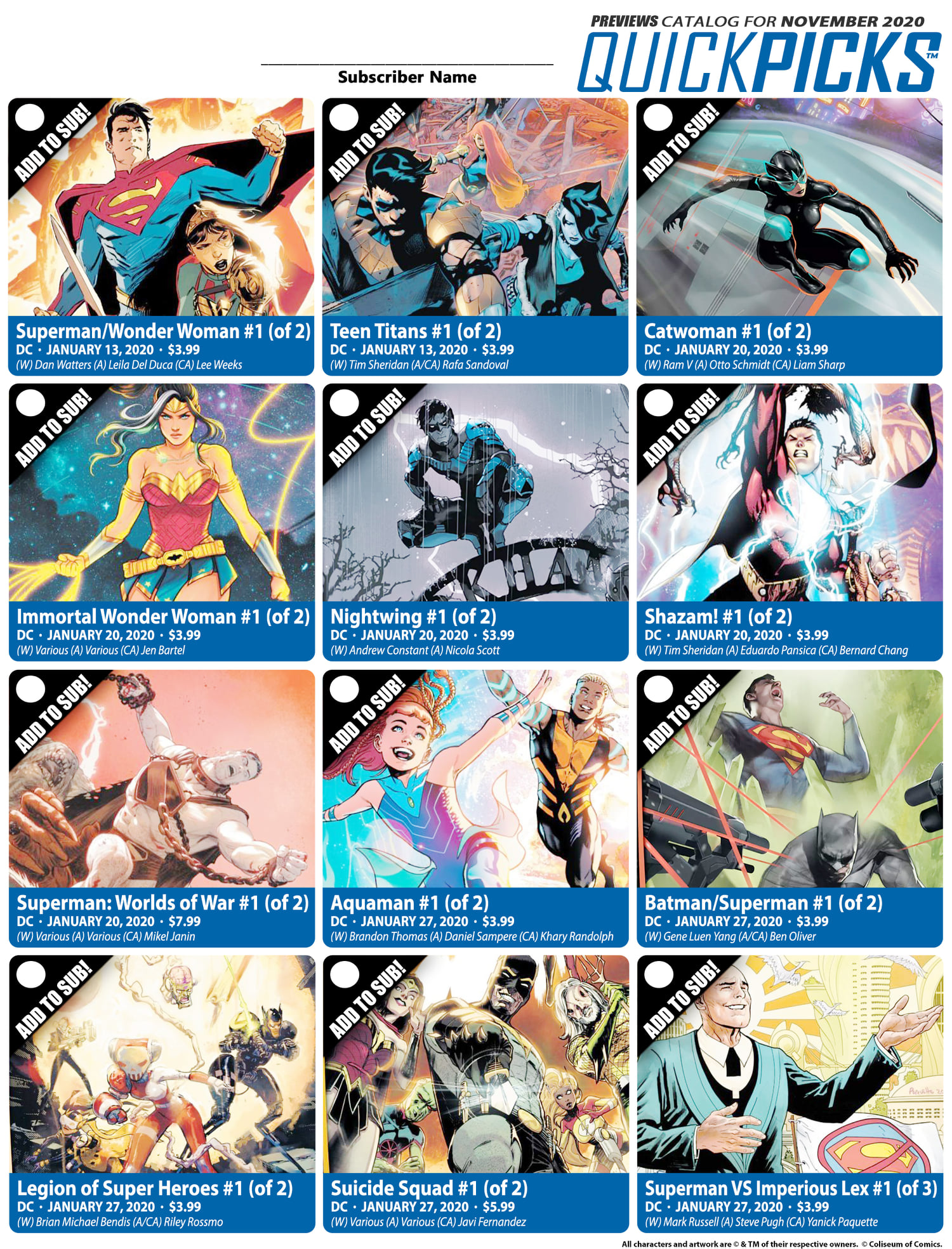12. Superman/Wonder Woman #1 (of 2) | Jan 13th, 2021 | $3.99 | 32 Pages | FOC 12/7/20