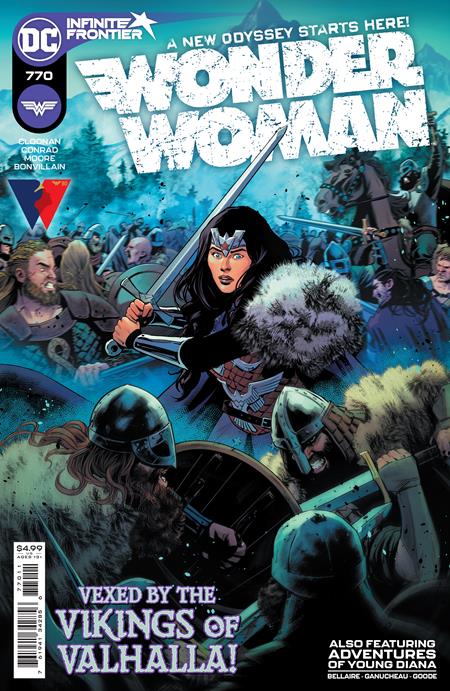 Finally from DC comes Wonder Woman #770. What. Is. Happening?! Wonder Woman just woke up in the middle of battle, with rampaging hordes of mythological beasts bearing down on her! Not even the Princess of the Amazons can survive such an assault, but that’s okay—it’s just another day in Valhalla! The warriors here spend their days fighting and their nights drinking—and if they die in combat they’ll be resurrected in time for the party. Strange, though, that no one seems surprised to see Wonder Woman in this crowd. It’s up to Diana to find out why things are going wrong in the Sphere of the Gods—and whether it has anything to do with what landed her in the Norse afterlife. This bombastic adventure comes from the new creative team of writers Becky Cloonan and Michael W. Conrad (DC Future State: Immortal Wonder Woman) and artist Travis Moore (Nightwing)! In the backup story, the world may know her as Wonder Woman, but once upon a time she was just Diana of Themyscira, a young girl struggling through adolescence on the shores of a mysterious island. Brought to you by Eisner Award winner Jordie Bellaire and fan-favorite artist Paul Ganucheau, this new backup story will present an intimate look into the princess’s upbringing and the hidden secrets of her past. Cover A by Travis Moore, cover B wraparound cover by Travis Moore!