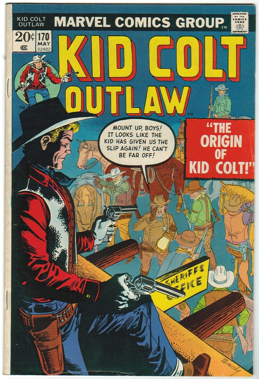 Kid Colt Outlaw #170 published by Marvel Comics in 1973, and featuring the retelling of the Origin of Kid Colt!